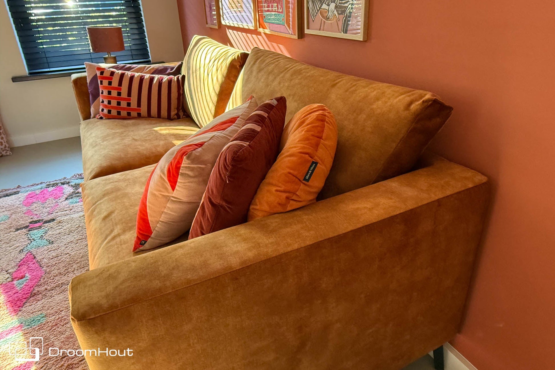 De Saint Louis 3-zits bank is verkrijgbaar in een breed scala aan hoogwaardige stoffen en leersoorten, waardoor je de perfecte bekleding kunt kiezen die aansluit bij jouw stijl en interieur. Of je nu kiest voor zacht textiel, robuust leder, of een combinatie van beide de mogelijkheden zijn eindeloos. Op de foto is de bank Saint Louis uitgevoerd in de prachtige stof Habana okerbruin. Deze warme, diepe kleur geeft de bank een luxe uitstraling met een vleugje vintage, terwijl de zachte textuur zorgt voor een aangenaam en comfortabel gevoel. Habana okerbruin is een veelzijdige tint die moeiteloos past bij diverse interieurstijlen, van modern tot klassiek. Laat je inspireren en kies uit verschillende kleuren, structuren en materialen om jouw Saint Louis bank volledig naar wens samen te stellen. Benieuwd naar alle mogelijkheden? Kom dan gerust een keertje langs in onze showroom in Utrecht.