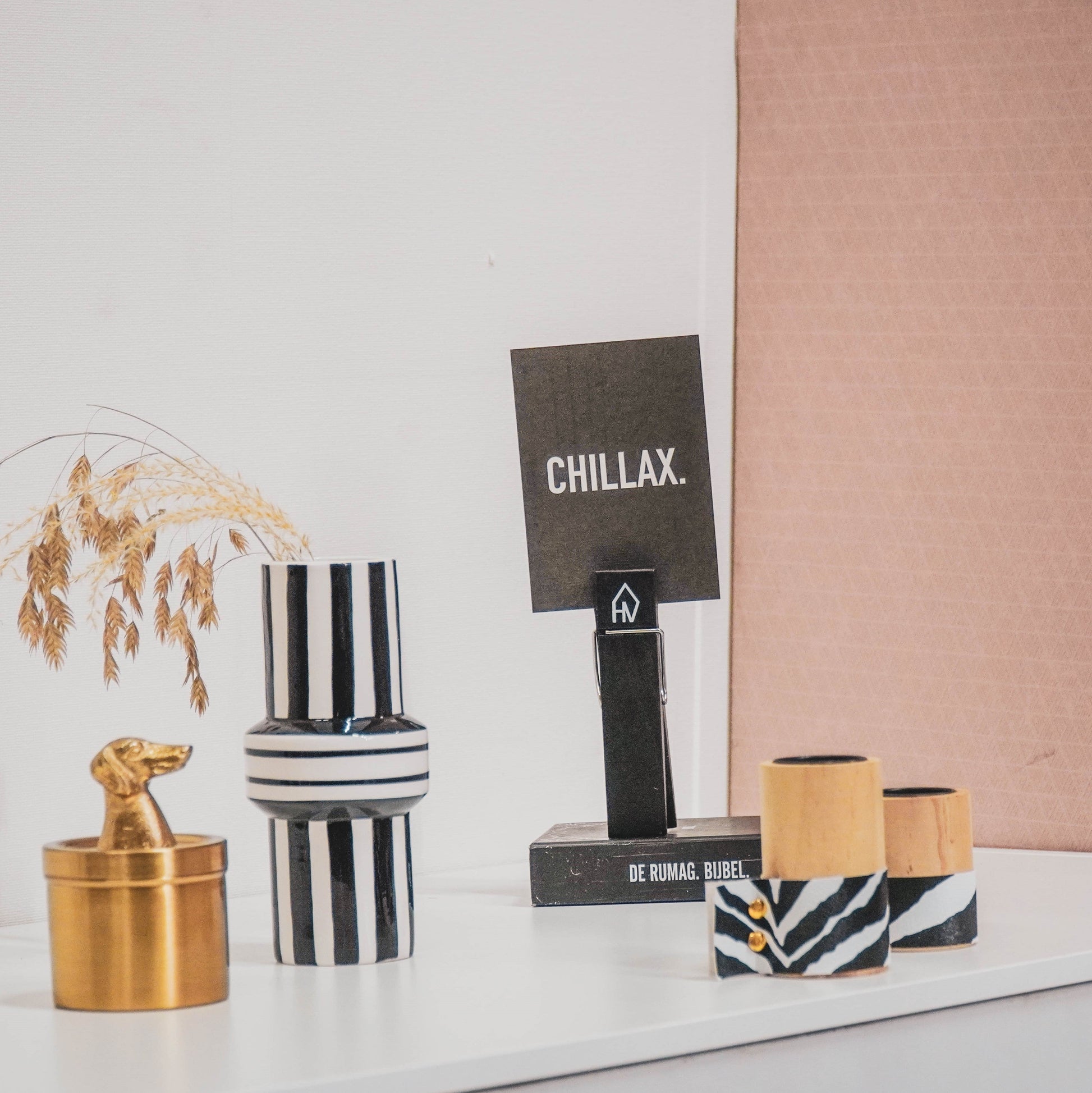 CHILLAX - Wij houden van quotes, het is gewoon kunst. Ben je op zoek naar een toffe of stoere quote, een mooie afbeelding of een grappige tekst? Dan vind je die sowieso in de Housevitamin collectie van zwart wit post kaarten. Deze kaarten met de quote 'Chillax, betekent chillen en relaxen. Dit soort quote kaarten zijn de finishing touch voor jouw interieur en de leukste post die je naar iemand kan sturen.