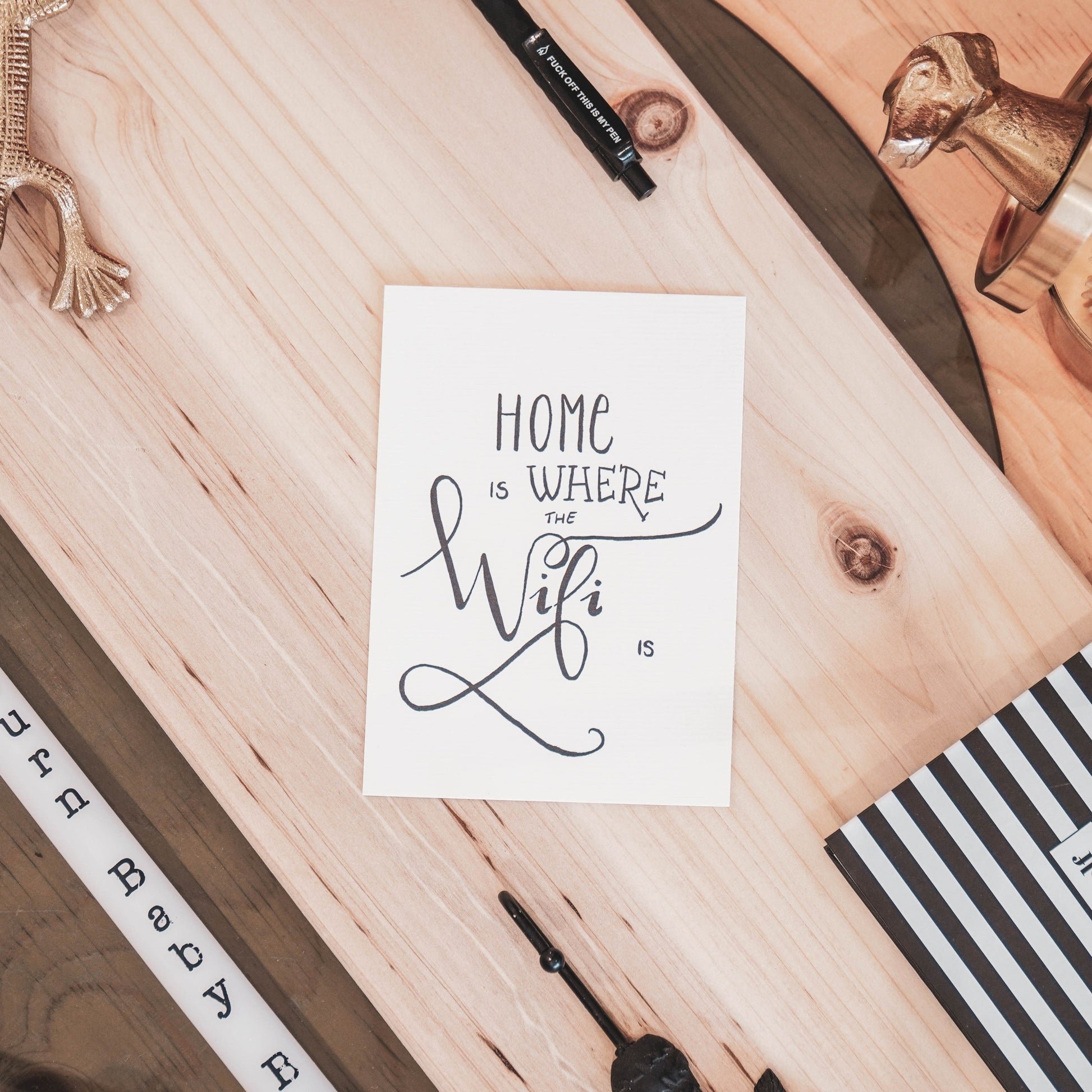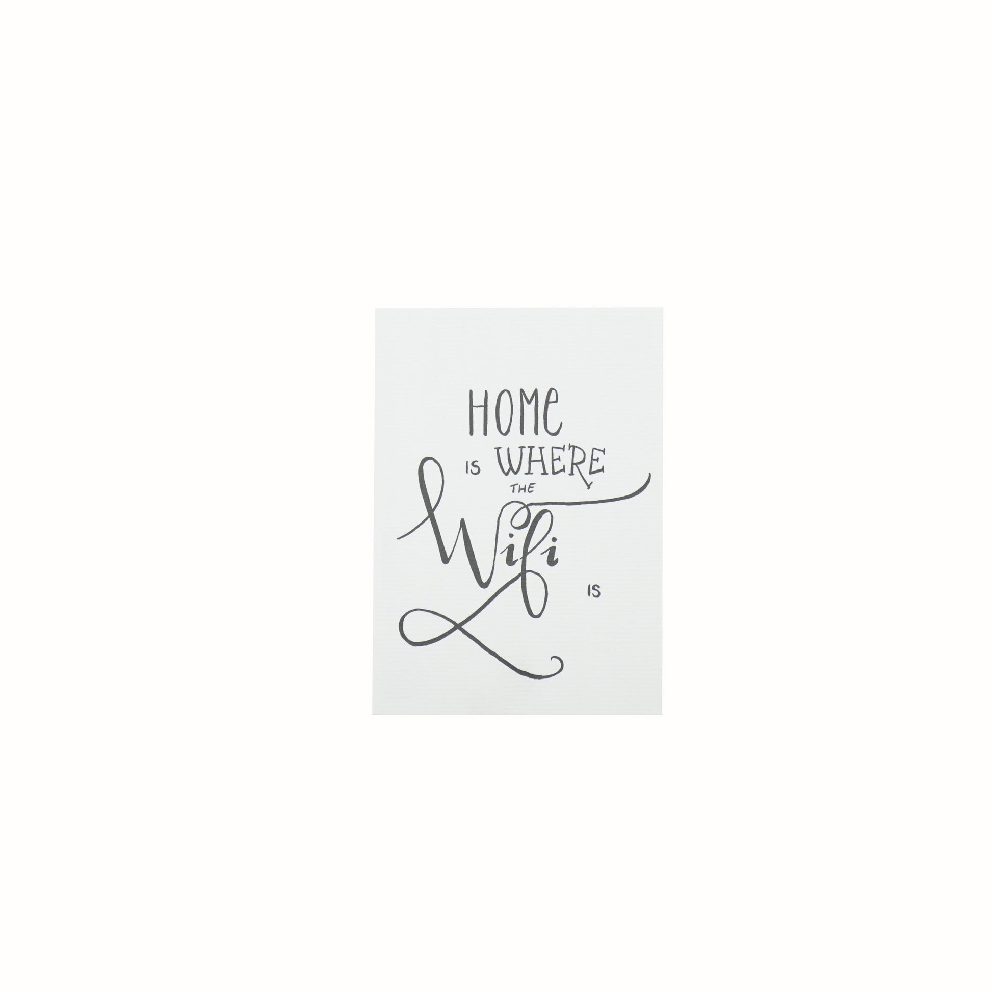 HOME IS WHERE THE WIFI IS - Wij houden van quotes, het is gewoon kunst. Ben je op zoek naar een toffe of stoere quote, een mooie afbeelding of een grappige tekst? Dan vind je die sowieso in de Housevitamin collectie van zwart wit post kaarten. Deze kaart met de quote: 'Home is where the wifi is', is de ideale kaart voor als iemand gaat verhuizen of als statement aan jouw inwonende pubers ;-).