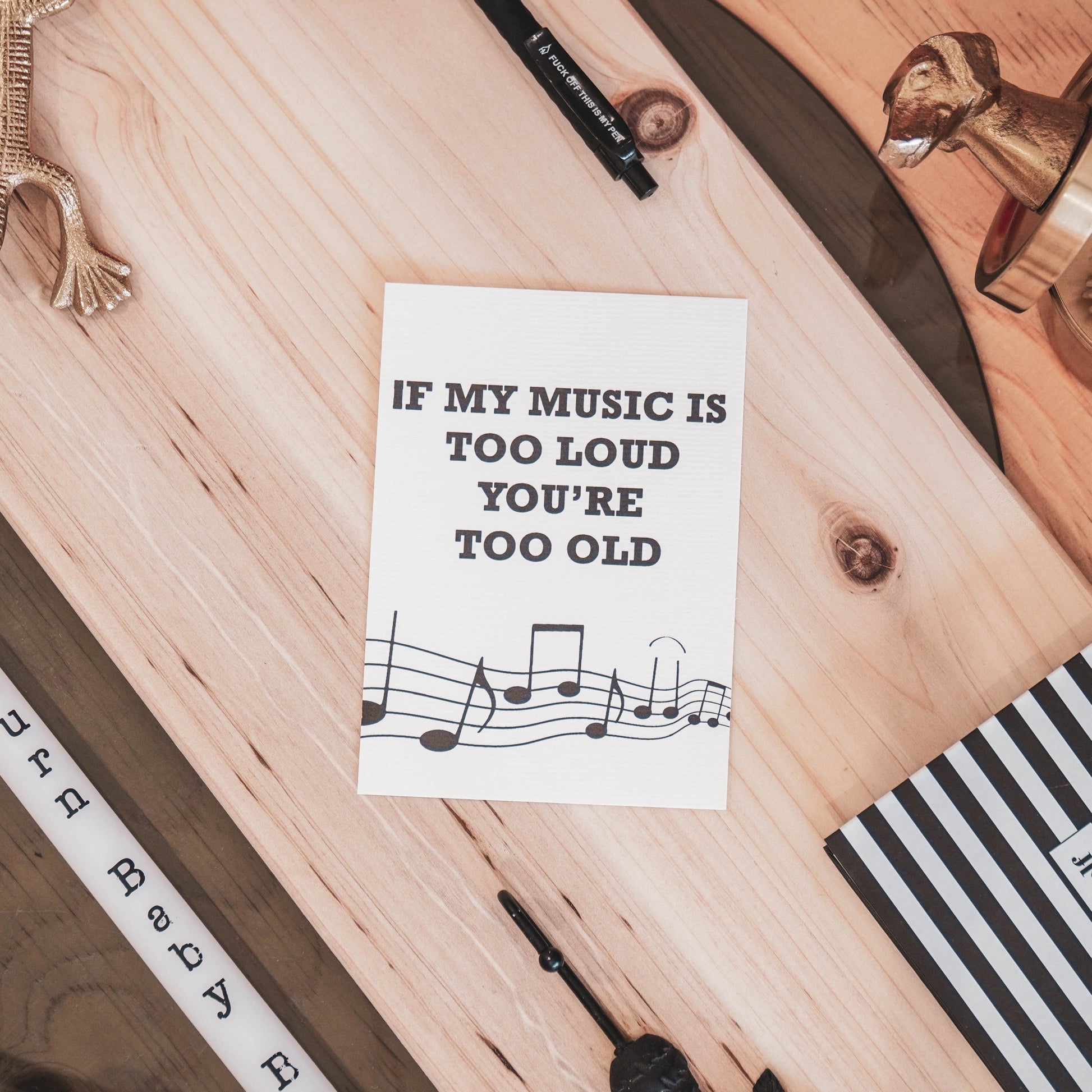 WHEN MY MUSIC IS TOO LOUD YOU ARE TOO OLD! - Wij houden van quotes, het is gewoon kunst. Ben je op zoek naar een toffe of stoere quote, een mooie afbeelding of een grappige tekst? Dan vind je die sowieso in de Housevitamin collectie van zwart wit post kaarten. De kaarten de finishing touch voor jouw interieur en de leukste post die je naar iemand kan sturen.