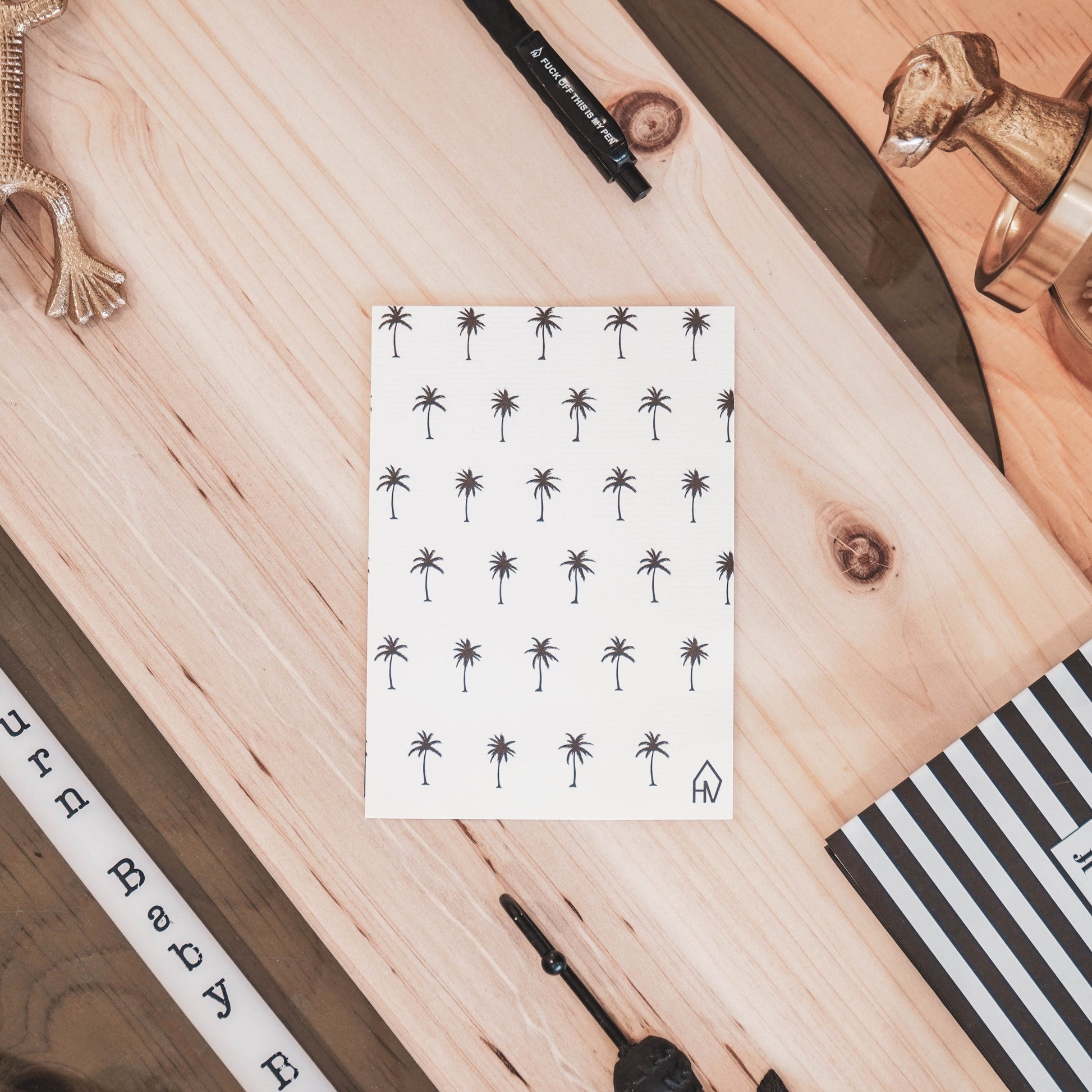 STATIONERY ROCKS! Wij houden van quotes, het is gewoon kunst. Ben je op zoek naar een toffe of stoere quote, een mooie afbeelding of een grappige tekst? Dan vind je die sowieso in de Housevitamin collectie van zwart wit post kaarten. De kaarten zijn de finishing touch voor jouw interieur en de leukste post die je naar iemand kan sturen. Deze ansichtkaart met palmboompjes past en voegt altijd.