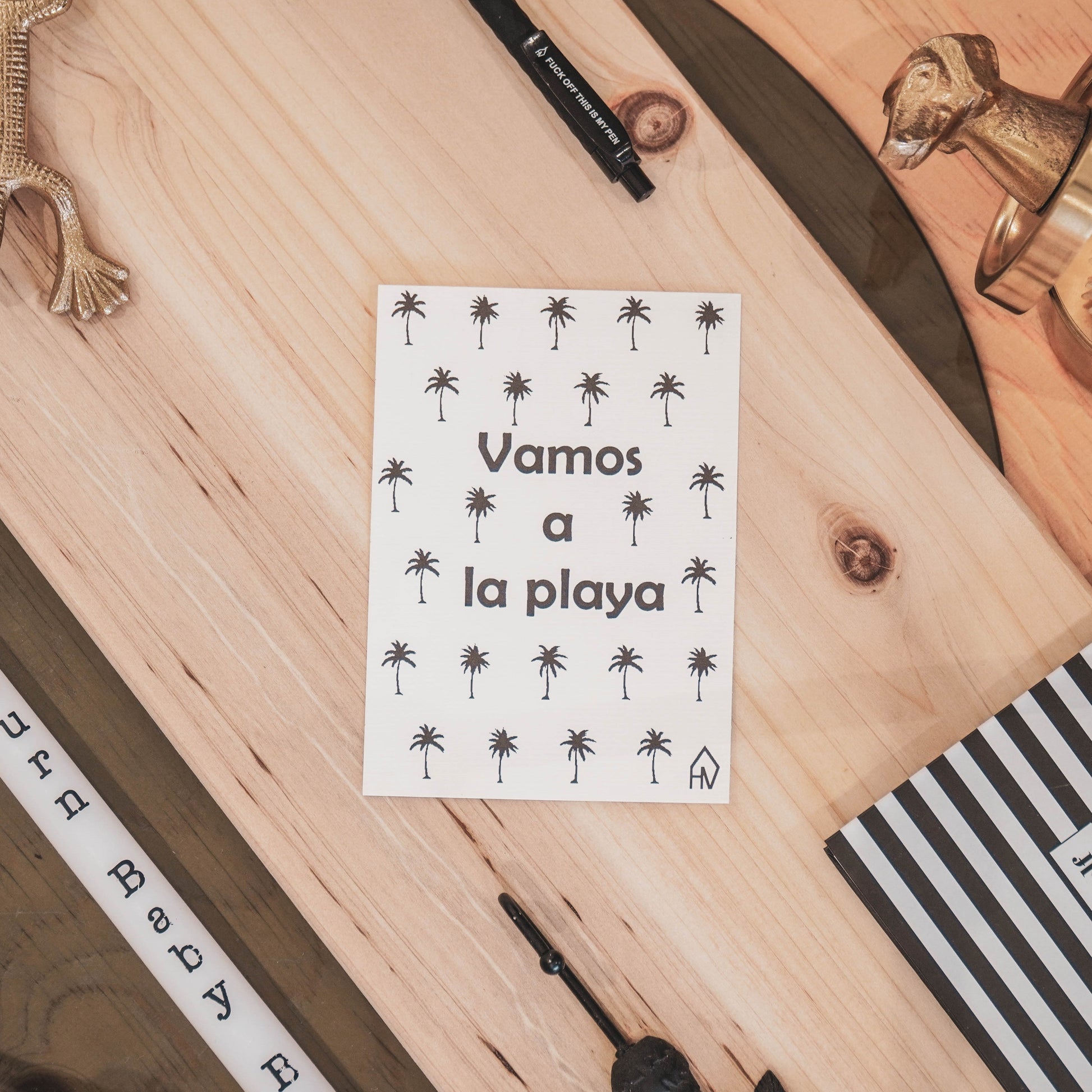 VAMOS A LA PLAYA! - Wij houden van quotes, het is gewoon kunst. Ben je op zoek naar een toffe of stoere quote, een mooie afbeelding of een grappige tekst? Dan vind je die sowieso in de Housevitamin collectie van zwart wit post kaarten. De kaarten zijn de finishing touch voor jouw interieur en de leukste post die je naar iemand kan sturen. Deze ansichtkaart met zomerse spreuk: 'vamos a la playa' brengt de zomer in je bol!