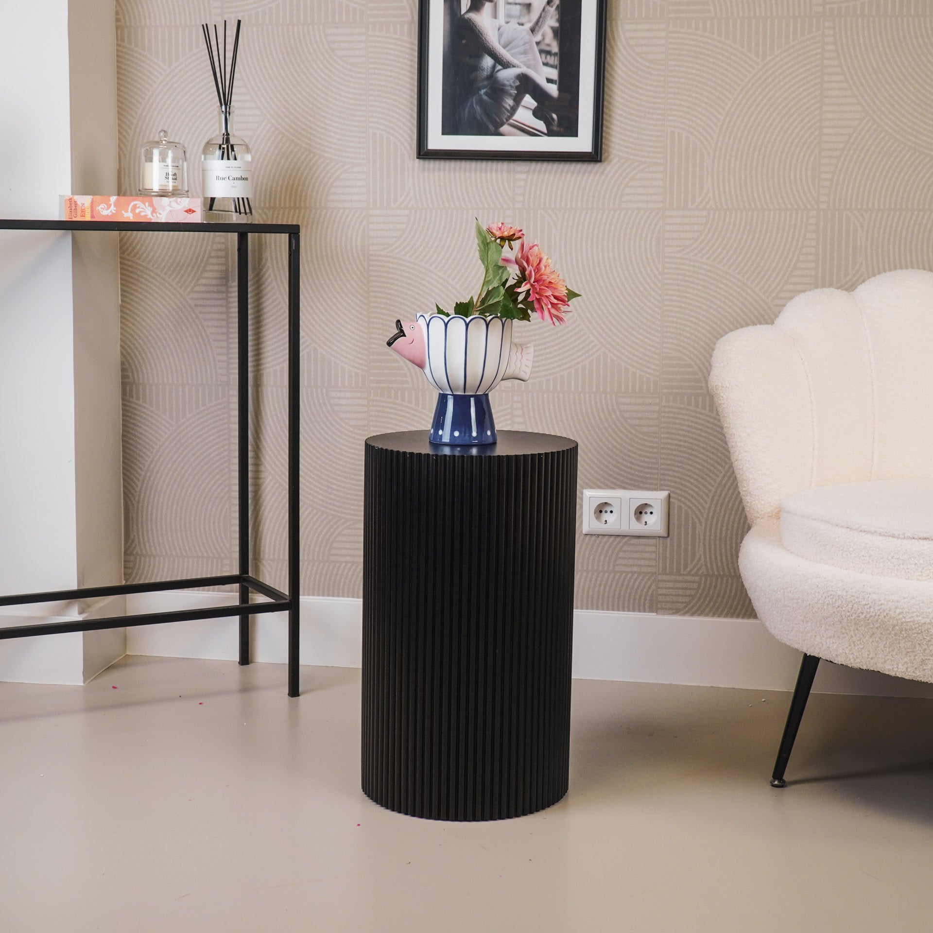 PILAAR BIJZETTAFEL - Planten en andere objecten verdienen het om te shinen, dus geef ze alsjeblieft een podium! Met deze geribbelde cilinders geef je jouw mooie items echt een podium. Dit formaat cilinder kan als pilaar of bijzettafel worden gebruikt. Jij beslist!