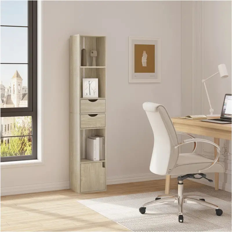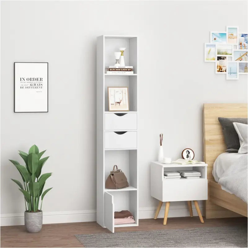 Deze boekenkast van BukkitBow is de perfecte oplossing voor iedereen die waarde hecht aan efficiënt ruimtegebruik zonder concessies te doen aan opslagmogelijkheden. Met 3 open vakken, 2 handige lades en 1 deurkast biedt deze boekenkast talloze manieren om uw spullen netjes en georganiseerd te houden. Bovendien kunt u de hoogte van de bovenste twee compartimenten aanpassen aan de grootte van uw items, waardoor deze boekenkast ideaal is voor een breed scala aan toepassingen in uw woonkamer, eetkamer, kinderkamer of kantoor.