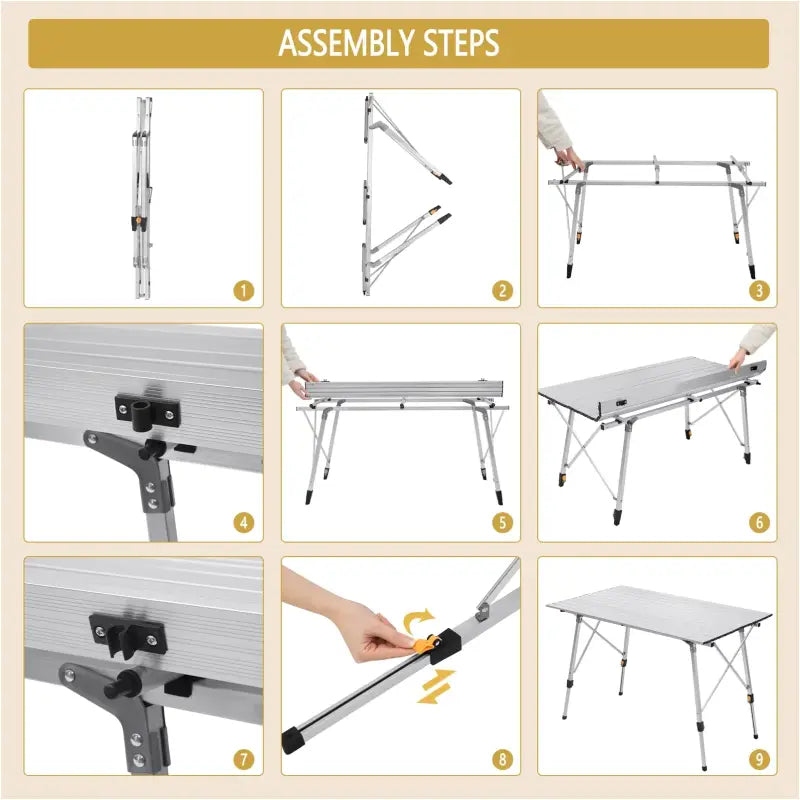De hoogte van de tafel kan eenvoudig worden aangepast van 45 tot 72 cm, waardoor hij geschikt is voor gebruik op oneffen terrein. Of je nu gaat kamperen, vissen, feesten of deelneemt aan activiteiten op de campus, deze multifunctionele tafel biedt ultiem comfort. Met zijn duurzame aluminium frame en weerbestendige constructie is hij klaar voor al je avonturen, zowel binnen als buiten.
