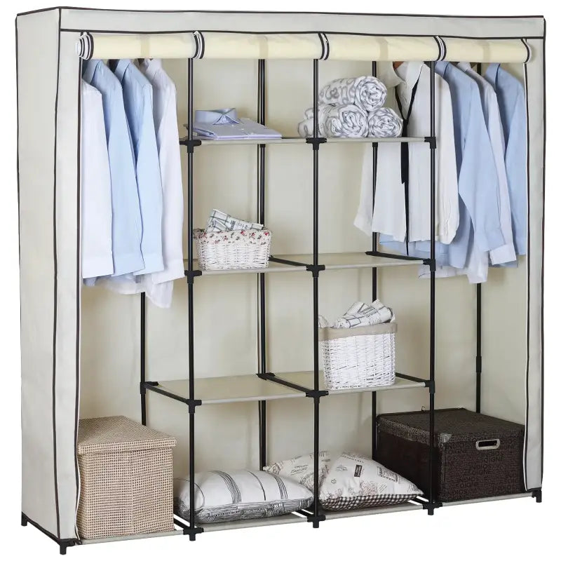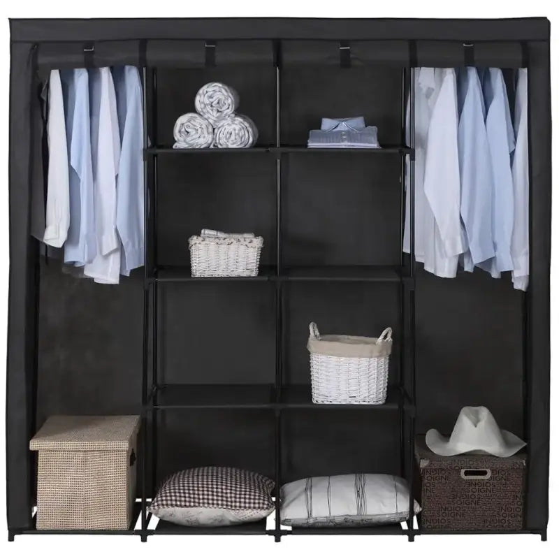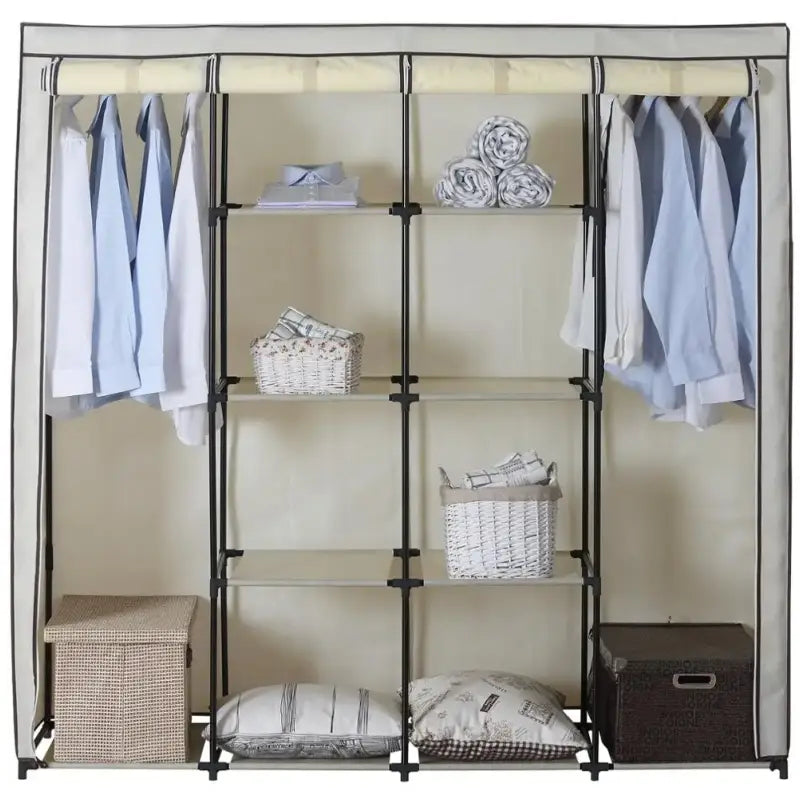 Bescherm uw kleding en linnengoed tegen stof en vuil met de bijgeleverde anti-stofhoes. Deze hoes is bestand tegen vochtigheid en kan eenvoudig worden verwijderd, gereinigd en weer gemonteerd. De kast is ontworpen met praktische deuren voorzien van ritssluitingen en klittenband, waardoor het gemakkelijk is om kleding te kiezen. Bovendien kunt u de zes planken naar wens aanpassen om aan uw specifieke behoeften te voldoen, waardoor de kast zeer veelzijdig is in gebruik.