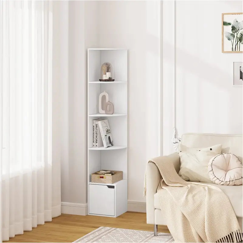 BukkitBow - Hoekplanken – Hoek Boekenkast – Met Deurtje en 5 Niveaus - Gemaakt van Duurzaam Houtmateriaal - Wit