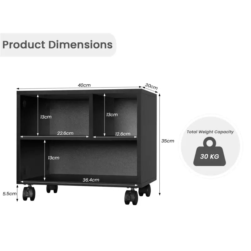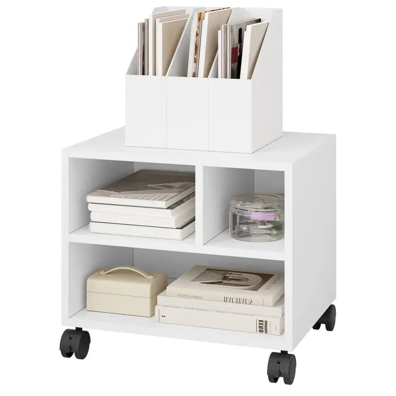 BukkitBow - Houten Kantoorkast / Printerkast met 3 Vakken en Wielen (40x35x30CM)