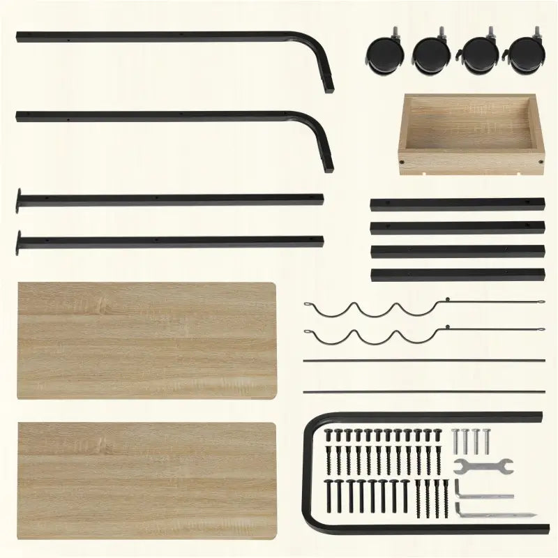 Optimaliseer je keukenruimte met de BukkitBow Industriële Keukentrolley. Met zijn robuuste constructie van klasse E1 kunsthout en stalen buis is deze trolley duurzaam en gemakkelijk te reinigen. De trolley is ontworpen in een aantrekkelijke combinatie van licht eikenhout en zwart, waardoor het een industriële uitstraling heeft die perfect past bij moderne keukens.
