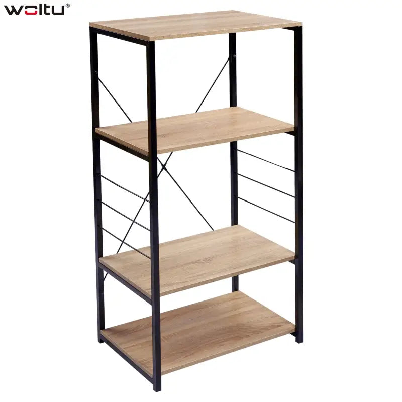 Dit opbergrek is eenvoudig te monteren en kan worden gebruikt in verschillende ruimtes, zoals de keuken, hal, woonkamer of slaapkamer. Elk onderdeel is genummerd volgens de meegeleverde handleiding, waardoor de montage snel en moeiteloos verloopt. De klassieke vormgeving maakt het ook mogelijk om uw magnetron op de bovenste plank te plaatsen en andere accessoires netjes op de onderste planken te organiseren.