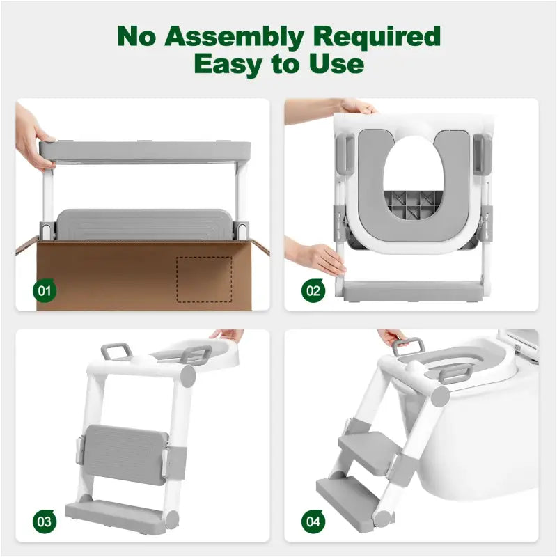 Met zijn non-assemblage en opvouwbare ontwerp is dit kindertoilet met trap eenvoudig uit te klappen voor gebruik. Wanneer het niet wordt gebruikt, kan het worden ingeklapt en opgeborgen tot een klein formaat, waardoor het ideaal is voor opslag thuis of gemakkelijk mee te nemen tijdens uitstapjes of op reis.