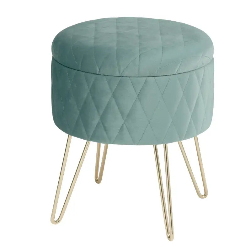 De opbergkruk is vervaardigd met hoogwaardige materialen, waaronder een fluwelen bekleding, schuimvulling, een MDF-frame en een stevige gouden metalen basis. Dit zorgt niet alleen voor een stabiele en duurzame constructie, maar biedt ook uitstekend zitcomfort. De zachte, gevoerde zitting van fluweel en schuim zorgt voor een comfortabele zitervaring, terwijl de gouden metalen frames een vleugje elegantie toevoegen aan het ontwerp.