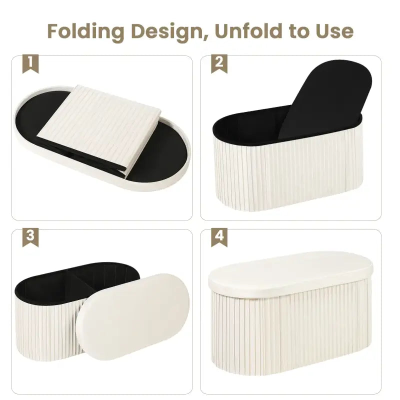 BukkitBow - Ronde Compacte Opbergpoef – Poef / Zitkist met Deskel - Opvouwbare Poef - Voetenbank met Opbergruimte - 38x38x36 CM