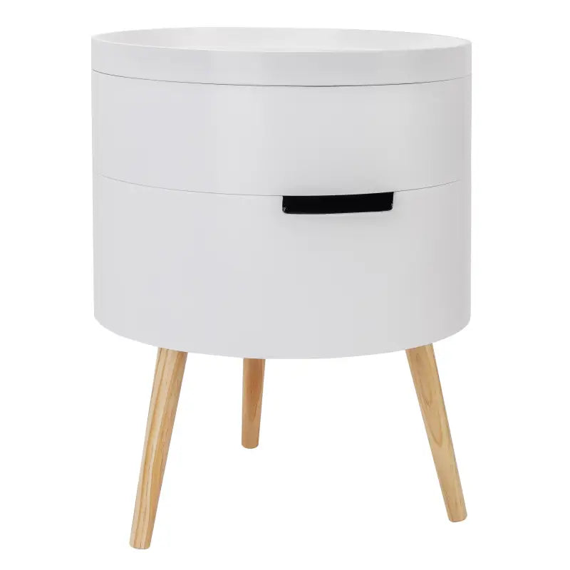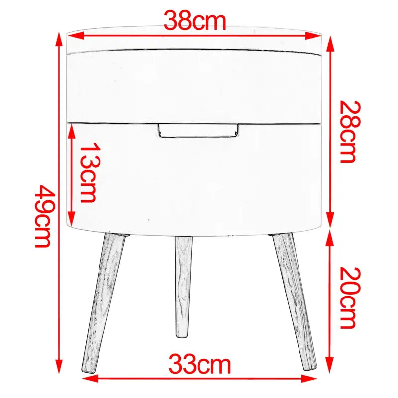 Dit nachtkastje is gemaakt van hoogwaardig MDF-plaatmateriaal dat voldoet aan klasse E1 en massief houten poten, waardoor het stevig en duurzaam is. Het tafelblad is voorzien van een sterke oppervlaktefilm die waterbestendig en krasbestendig is, waardoor het gemakkelijk te onderhouden is. Met twee opbergcompartimenten biedt dit nachtkastje voldoende ruimte voor het opbergen van boeken, tijdschriften en andere kleine voorwerpen, terwijl de vloerbeschermers onderaan de poten je vloer beschermen tegen krassen en lawaai.