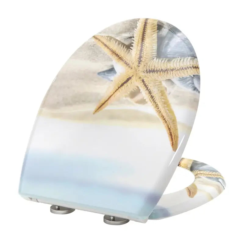De toiletbril is gemaakt van Duroplast, wat zorgt voor een glad oppervlak dat antibacterieel en gemakkelijk schoon te maken is. De roestvrijstalen scharnieren garanderen stevigheid en duurzaamheid. Bovendien geeft het stijlvolle ontwerp met print een mooie uitstraling aan je badkamer. Met afmetingen die geschikt zijn voor standaard O-vormige toiletpotten en een draagvermogen tot 150 kg, is deze toiletbril een praktische en elegante toevoeging aan elke badkamer.