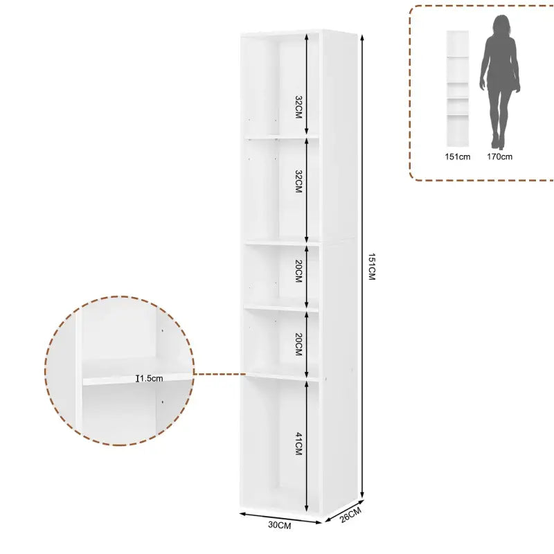 BukkitBow - Vrijstaande Boekenkast met 5 Kubussen - Vitrinekast / Organizer voor Woonkamer - 30x151x26cm