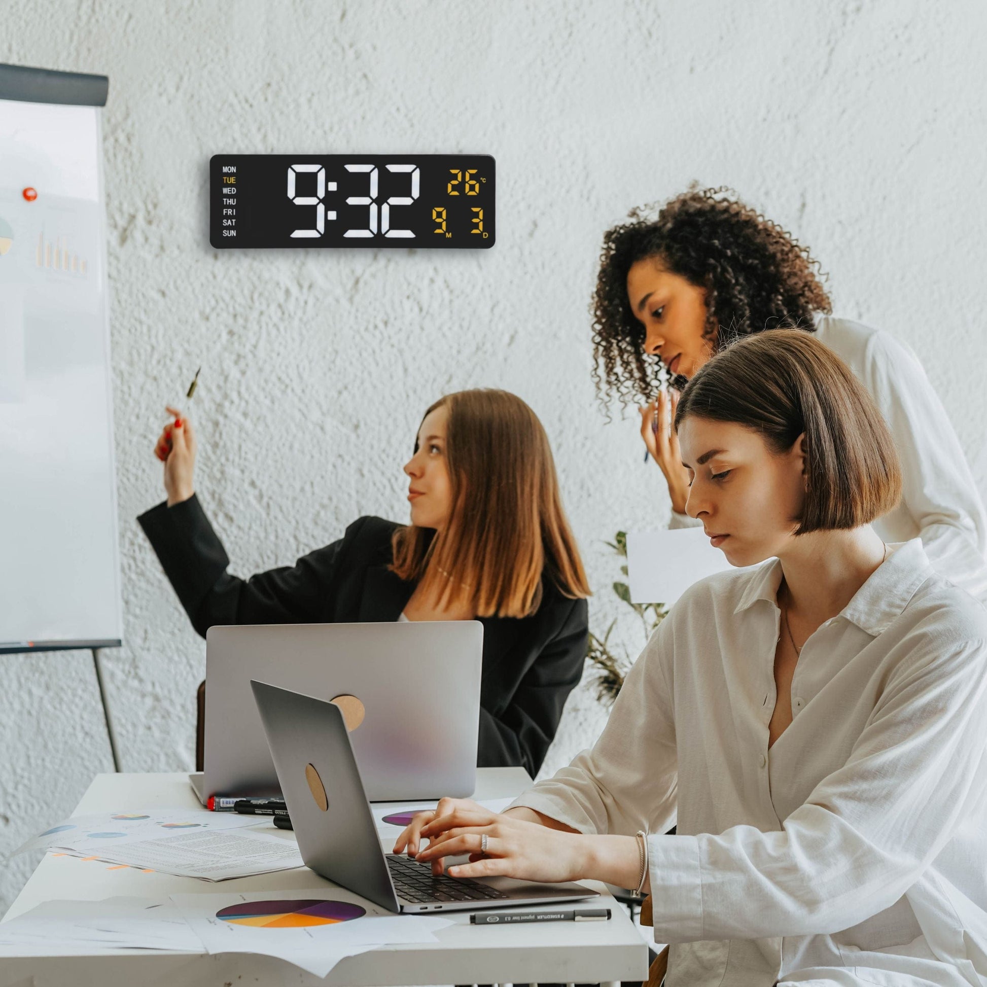 The Super Digi brings back the retro charm of early digital clocks, with a large display that shows information of time, alarm, date/day, timer/count down and temperature. Its prominent design makes sure you never miss a beat. This all-in-one digital clock runs on AC power with a 2.8-meter long USB cable included. Has an option to choose °F or °C