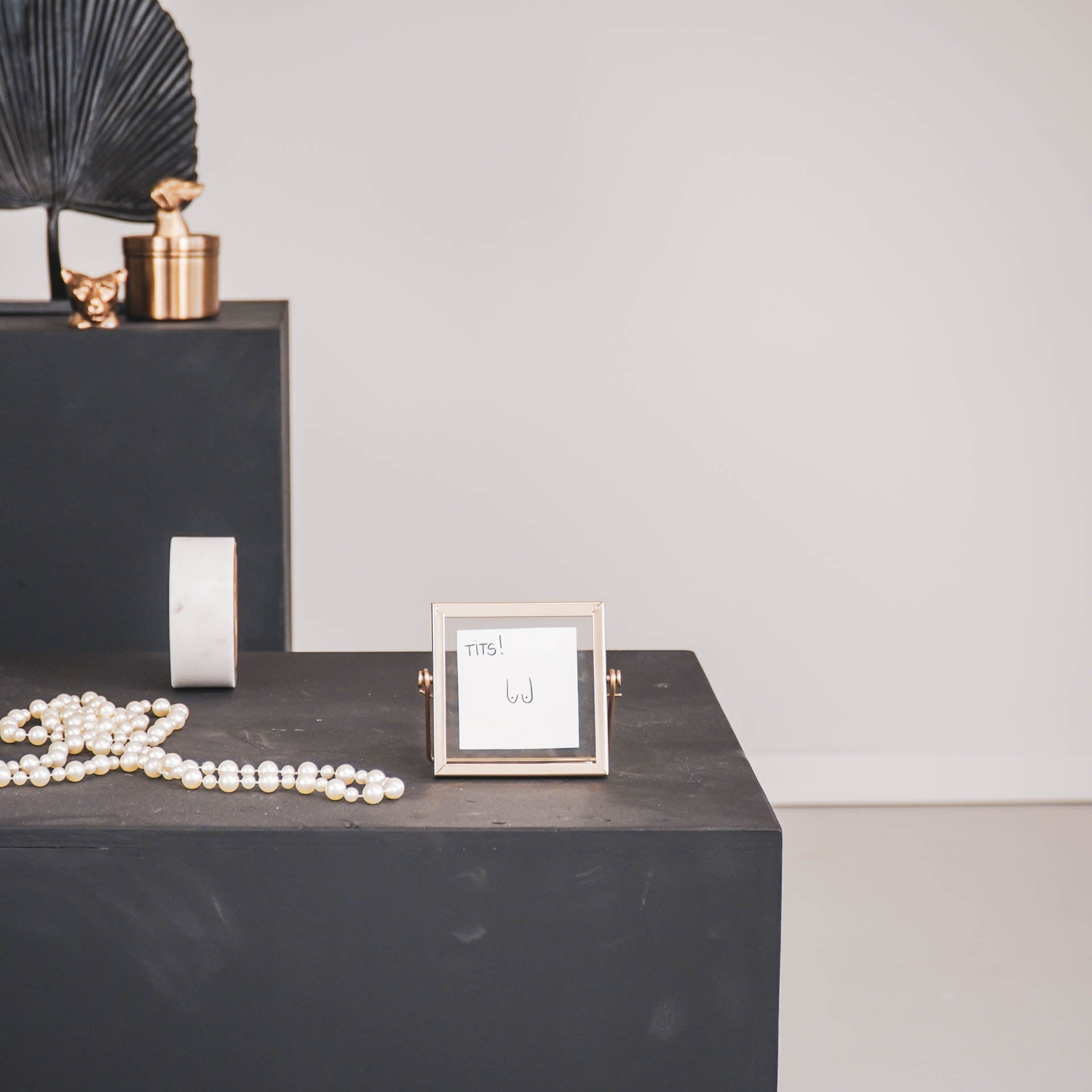 PICTURE PERFECT- Op zoek naar een stijlvolle fotolijst om jouw meest dierbare herinneringen te tonen? Deze prachtige gouden metaal en glas fotolijst van Housevitamin is precies wat je nodig hebt! Met afmetingen van 12x10 cm is het perfect voor elk interieur. Creëer eindeloze mogelijkheden door steeds verse natuurlijke objecten toe te voegen. Laat je creativiteit de vrije loop!