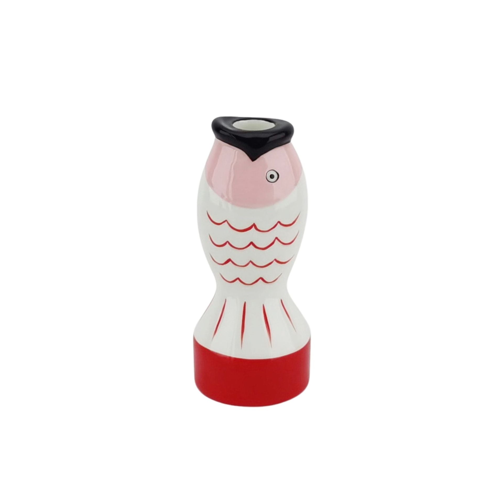 Kaarshouder-Kandelaar - Vis - Dolomiet - Rood/Wit/Roze - 7x7x16,5cm