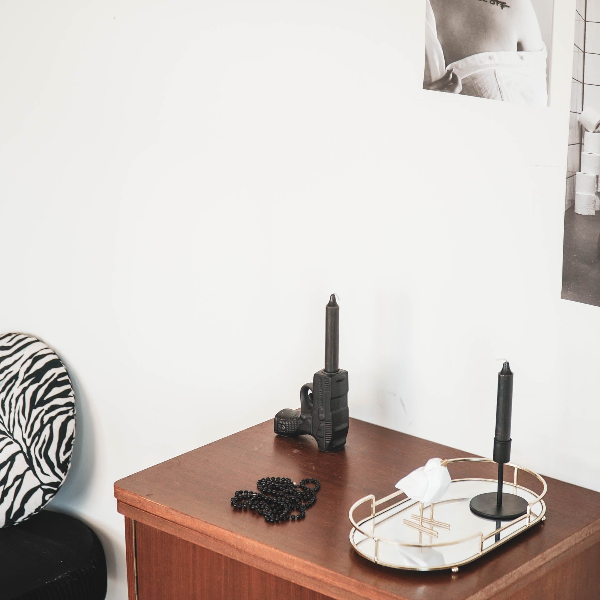 Kandelaar - Pistool - Keramiek - Zwart - 12x12cm