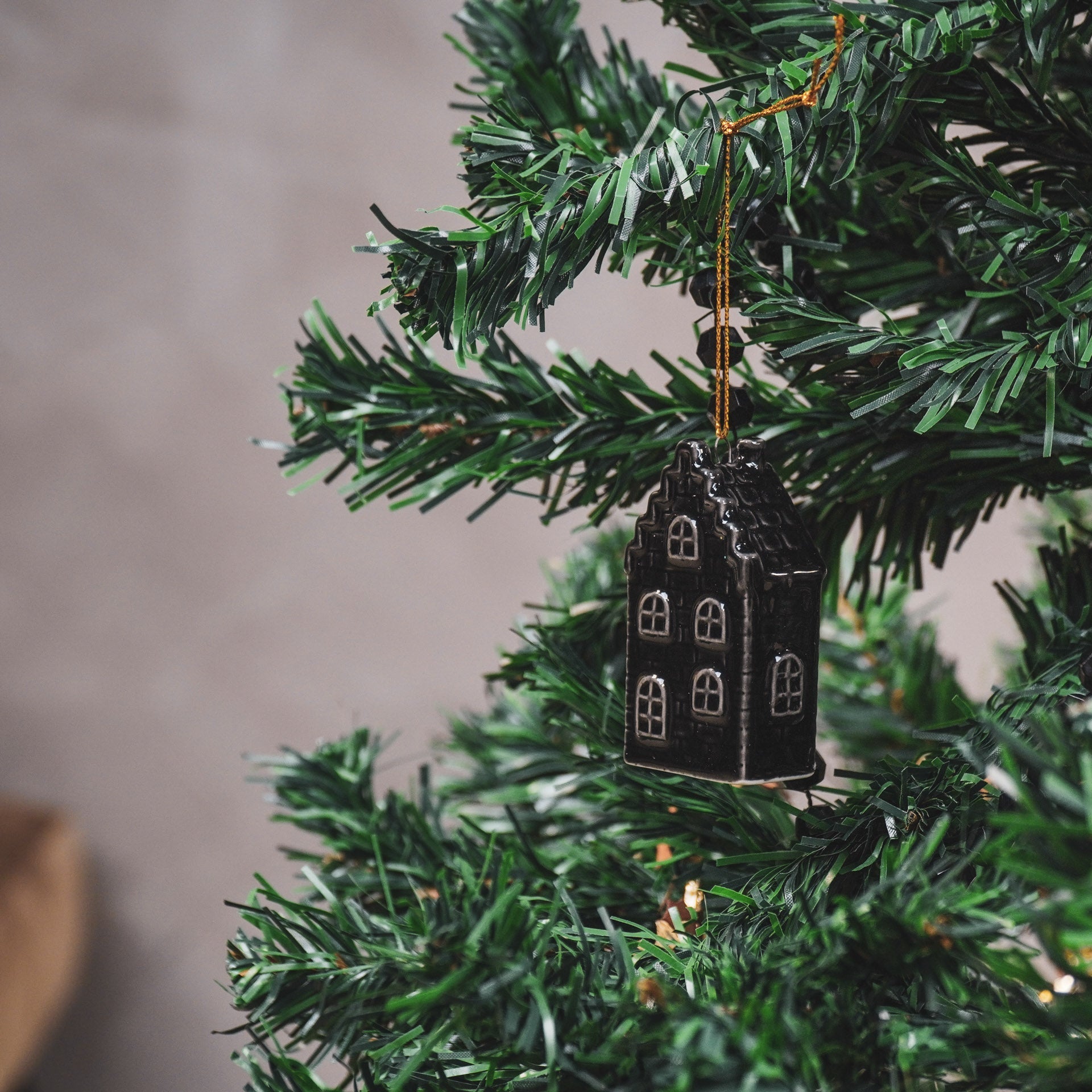 Kersthanger - Huisje - Keramiek - Zwart - 3,5x2x6,5cm