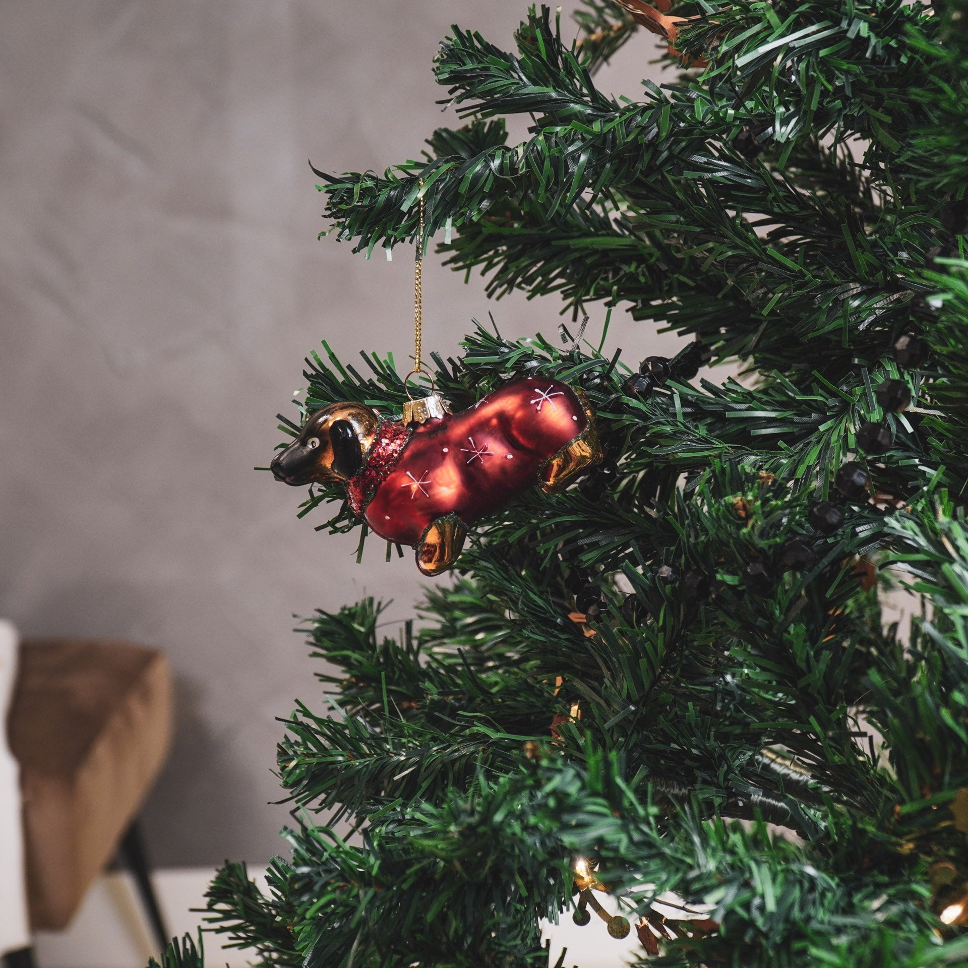 Kersthanger - Teckel - Glas - Bruin/Rood - 9x3,5x6cm