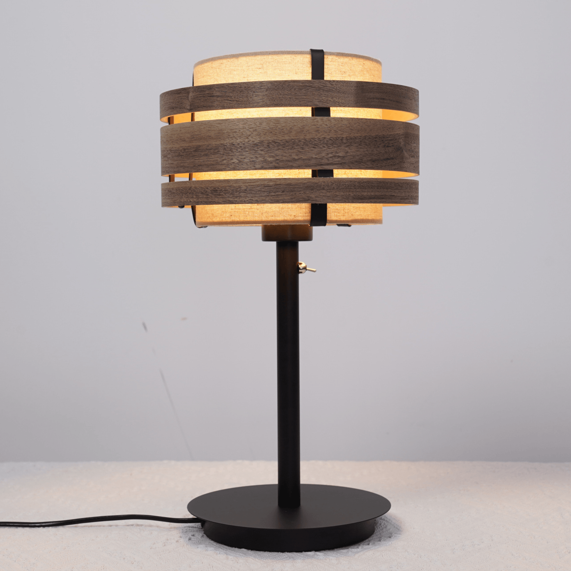 Nextime's Beam lamp shade 25 cm features a sleek, minimalist silhouette that blends functionality, elegance, and a touch of natural beauty. Crafted using a combination of plywod and walnut veneer, adding depth and contrast with the soft light grey fabric that creates a gentle inviting glow.