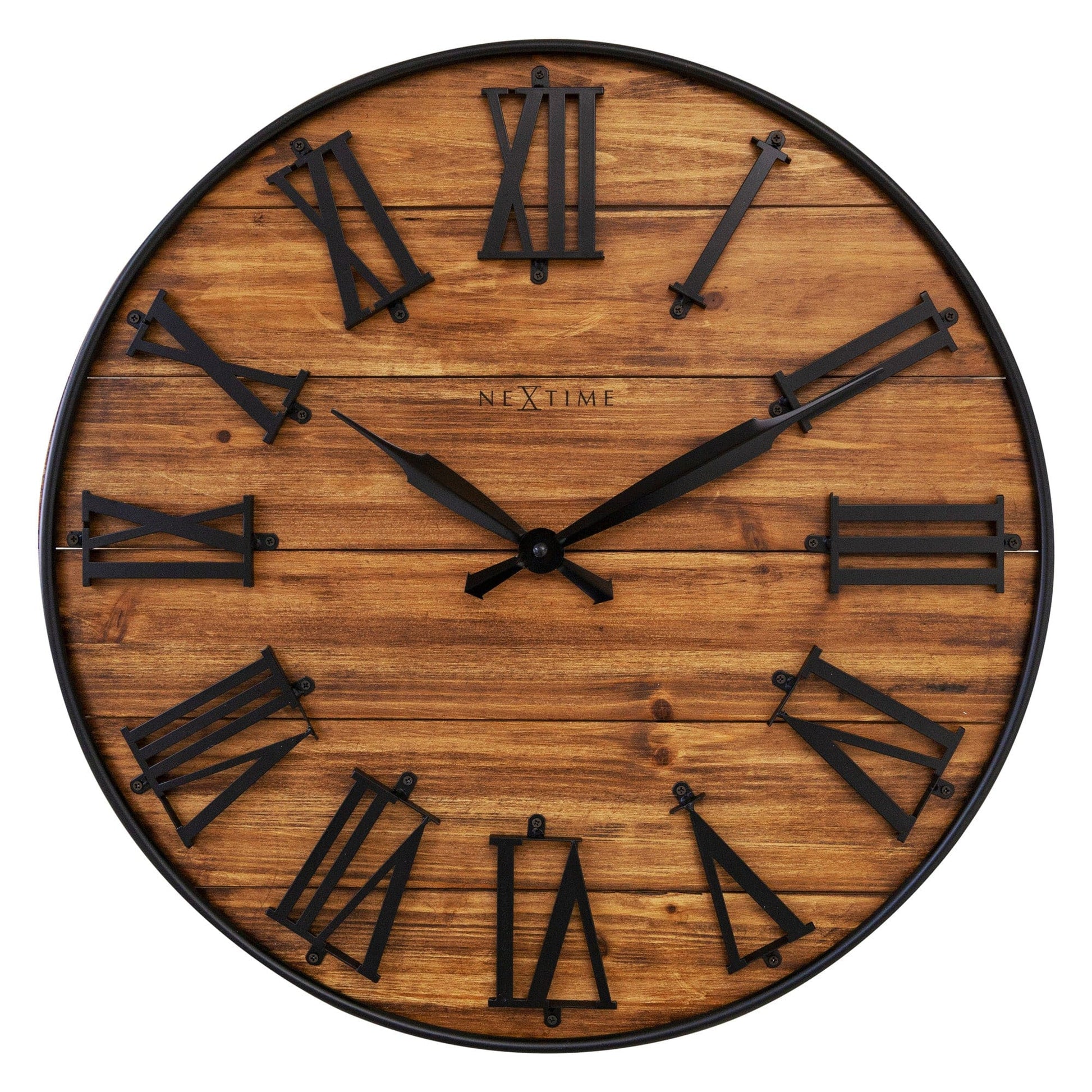 This NeXtime "Manchester" transforms an open and plain wall into a timeless focal point with its large size (50cm) and bold index. The black roman index (in metal) and slim metal edge contrasts nicely with the dark wooden clock face. Each clock face is unique that reflects the grain of the wood it was made from. This silent clock is also perfect for your bedroom since it has no annoying ticking sound! It runs on 1x AA battery (not included)