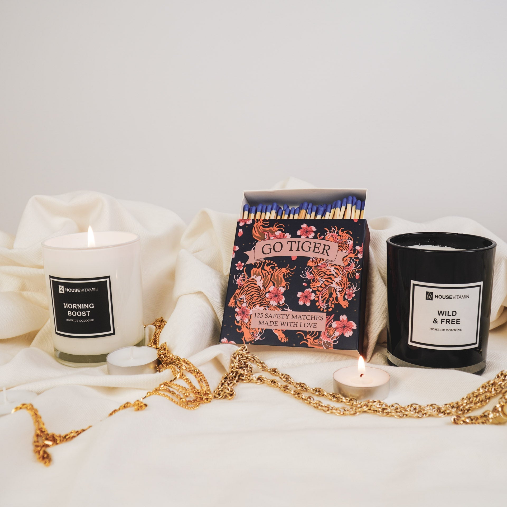 LUCIFERS KUNNEN OOK LEUK ZIJN- Dit gekleurde lucifer doosje is handig en een prachtig styling object met zijn mooie dessin! Het doosje is versierd met tijgers en mooie bloemen met de spreuk: 'Go Tiger'! De lucifers hebben een blauwe kop en zijn 10 cm lang. In een doosje zitten 125 stuks. Kaarsjes aansteken is nog nooit zo leuk geweest!