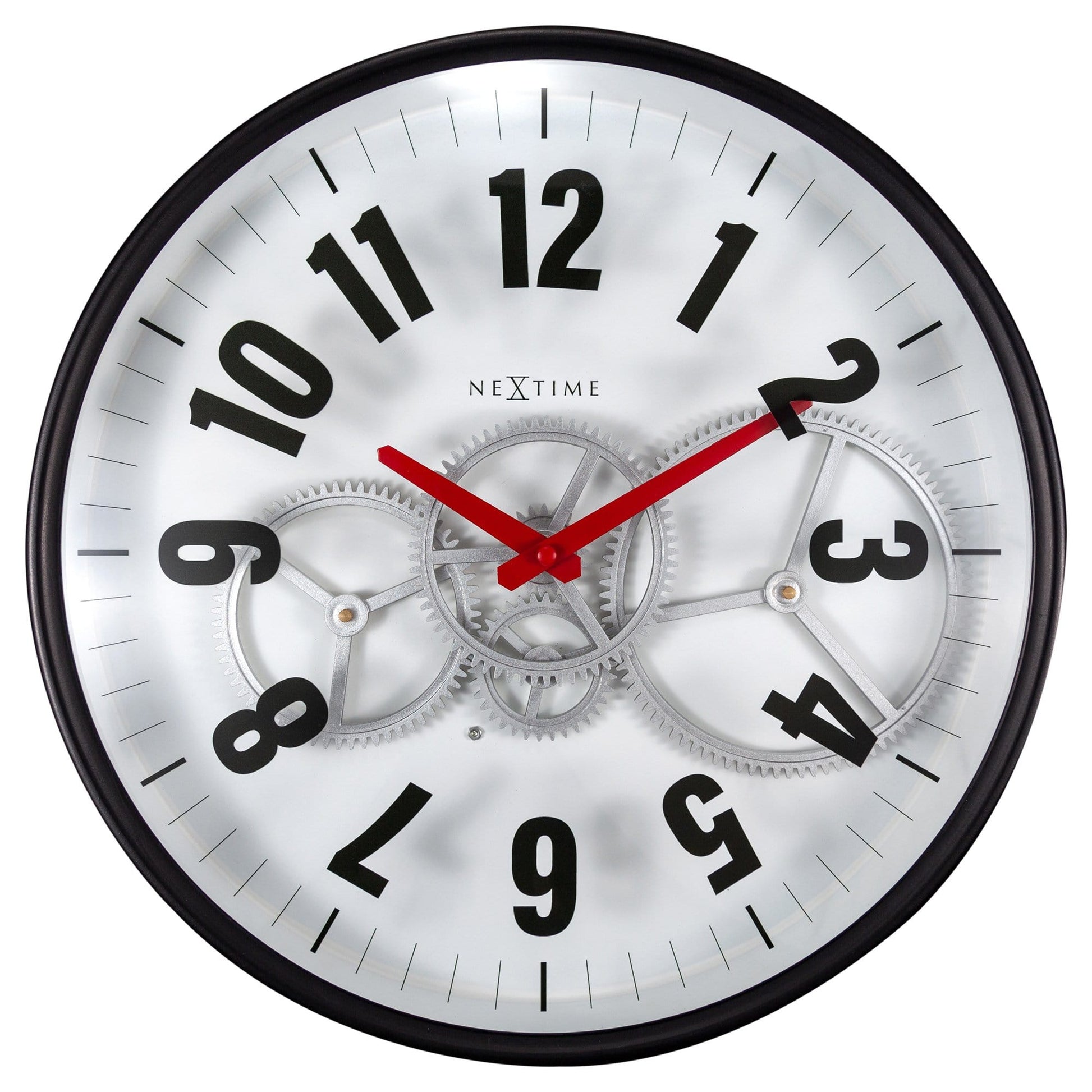 The NeXtime "Modern Gear Clock" (36cm) gives a twist on the classic design through the combination of modern red hands, a clear index and real moving gears. Don't like the movement? No problem, the moving gears are separately controlled and can be easily switched off. This wall clock is available in black or white and works on 3x AA battery (not included).