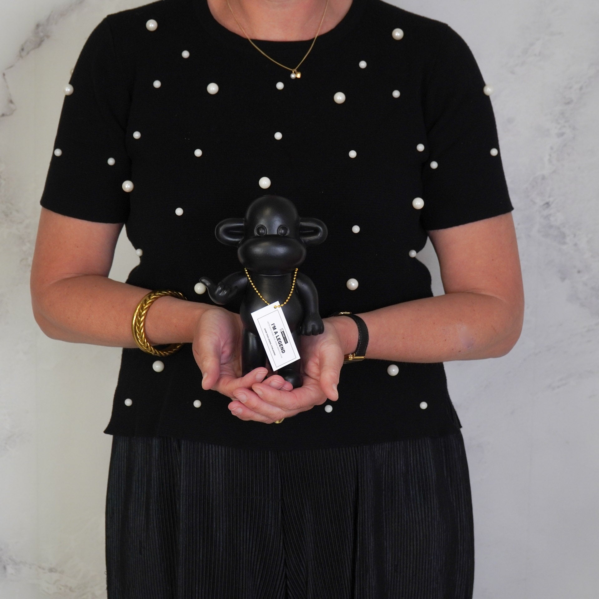 Ornament - Hang loose Aap Beeld 'The Legend' - Polyresin - Zwart - 11x7x19cm