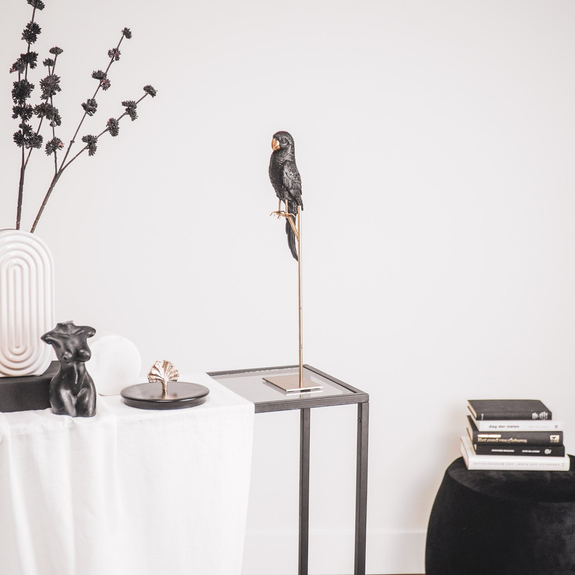 Stylingtip: Zet dit papegaai beeld waar je wel wat hoogte verschil kunt gebruiken.