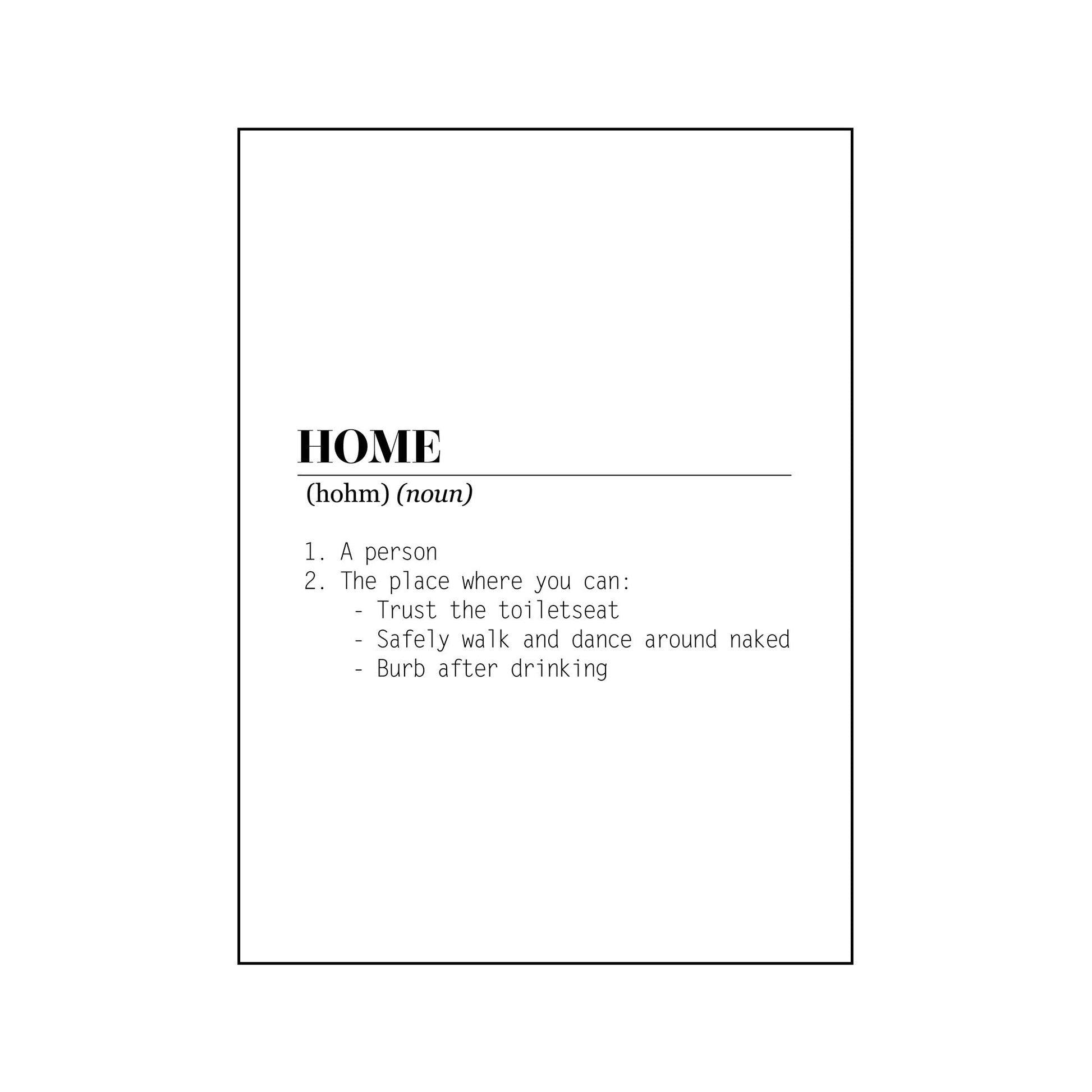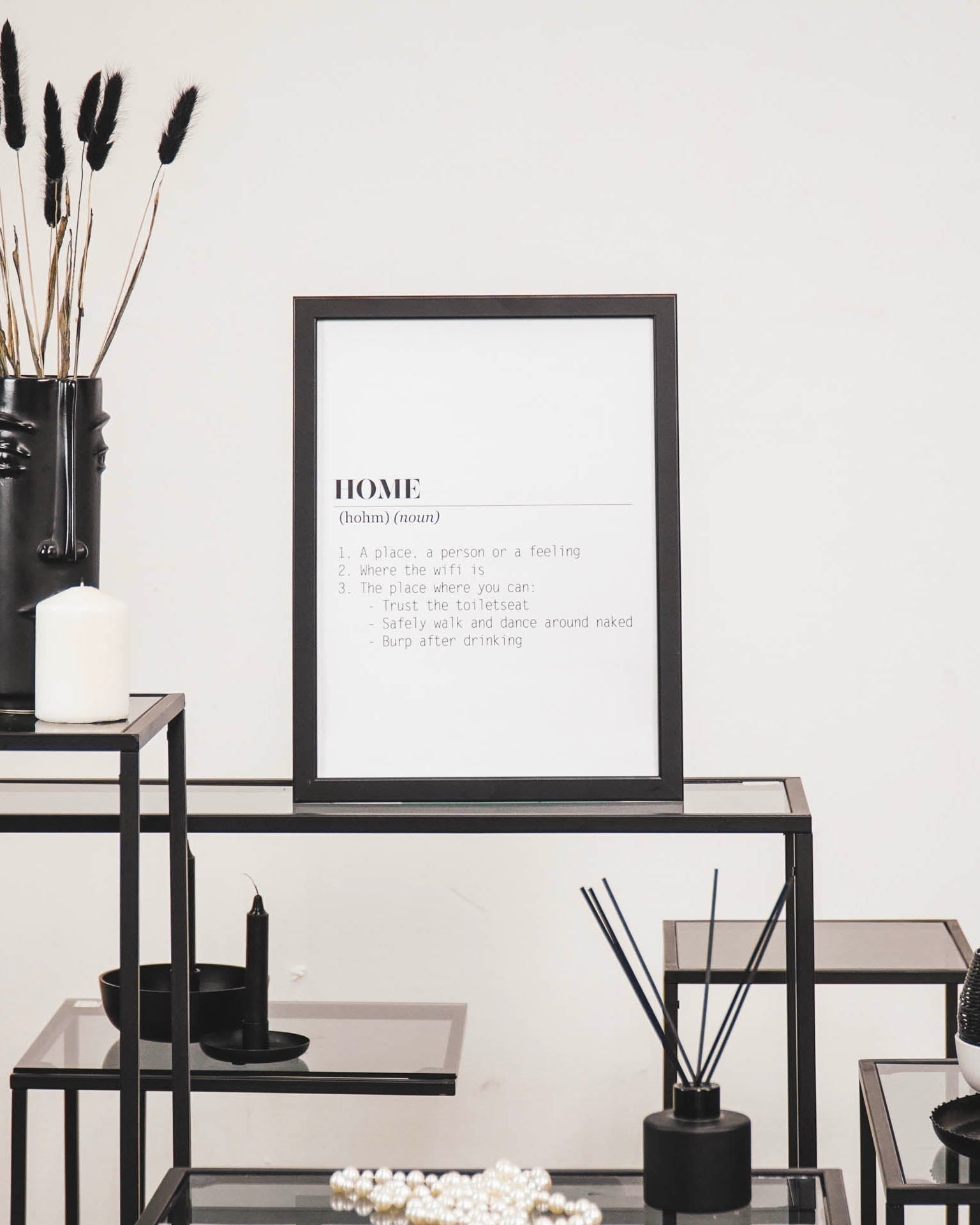 WALL ART - Met grote trots presenteren wij onze kunst posters. Zwart wit posters met kunst foto's en quotes. 'Home' heeft meerdere betekenissen en wij willen dit graag aan jou laten zien. Geef deze woordenboek poster met Home een mooie plek op jouw muur en laat je erdoor herinneren wat thuis voor jou betekent.