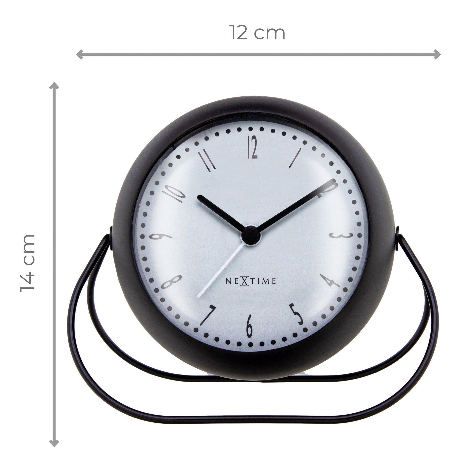 NeXtime 'Bubble Alarm Clock', a 14x12x8cm table alarm clock, is a blend of elegance and functionality. Designed by Jette Scheib, its matt black metal construction exudes a contemporary charm. Silent in its operation and powered by 1 x AA battery (not included), this clock ensures timely wake-ups.