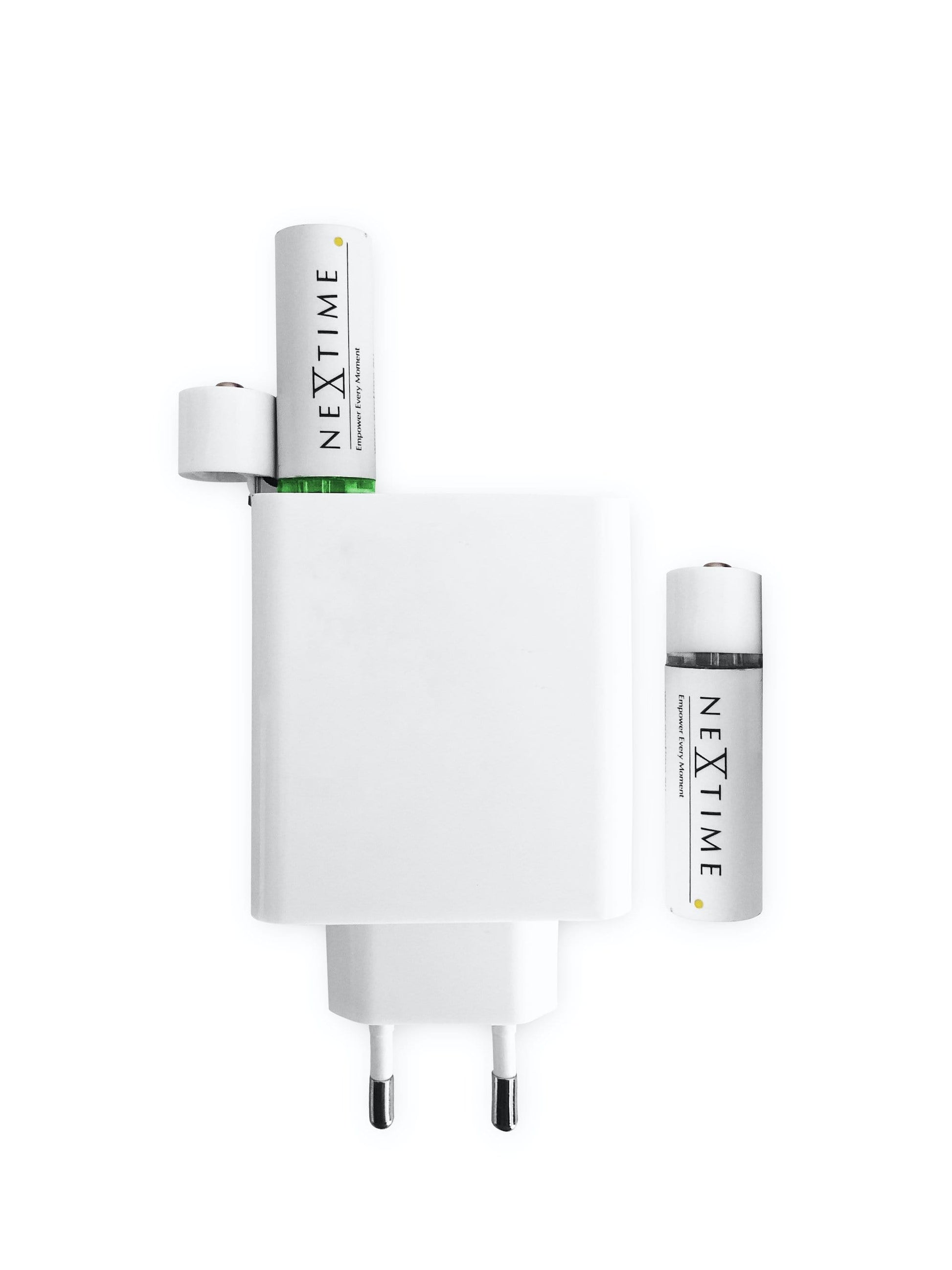 The white USB AA battery is a rechargeable Lithium battery and stays at 1,5V its entire lifespan. It is reusable, so it will help stop wastin batteries.The USB battery comes in a set of 2pcs or 4pcs in a handy storage box. The battery is very easy to charge in any USB port and will be fully charged within 2 to 3 hours!