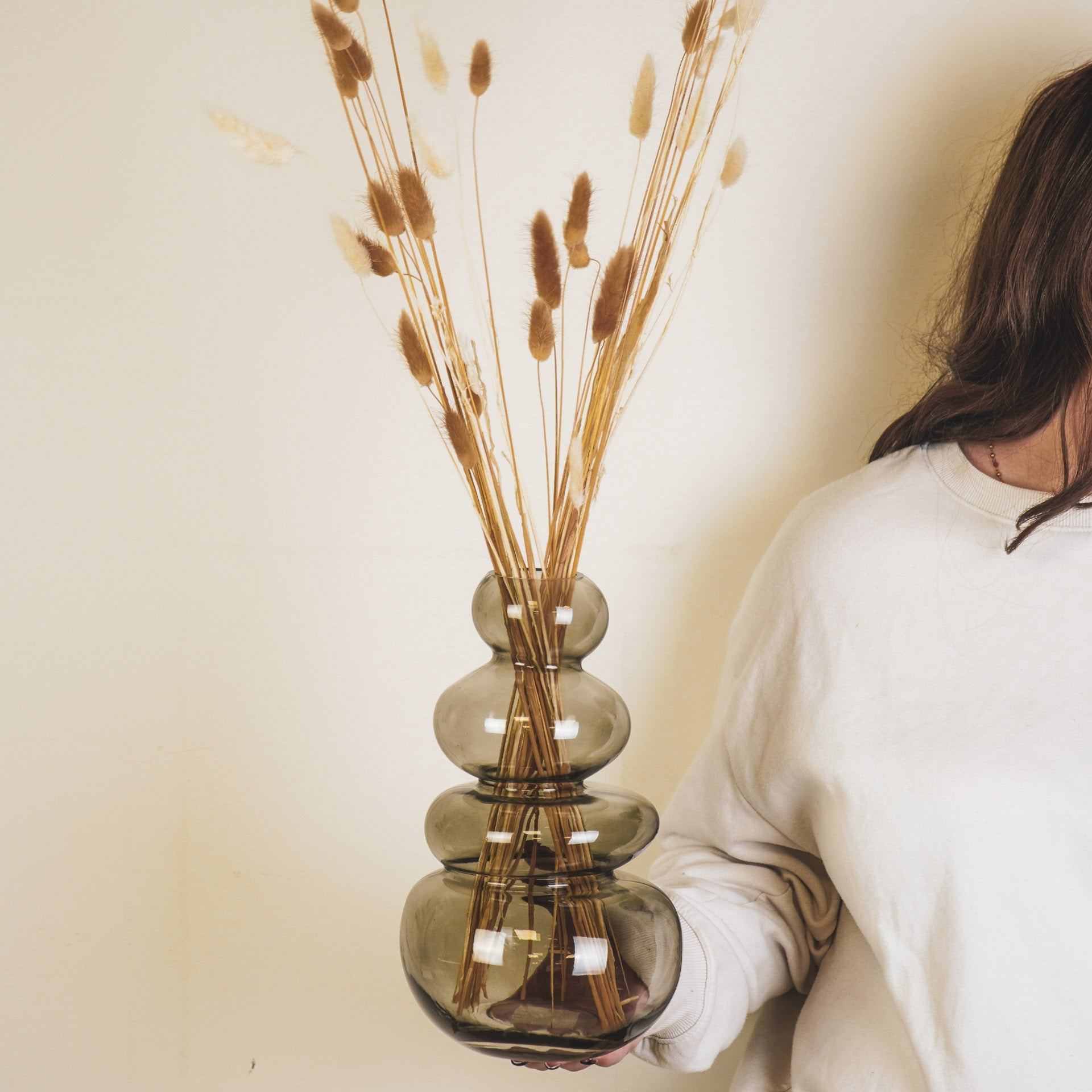 Vaas- Gestapelde Stenen - Glas- Grijs -16x14x27cm