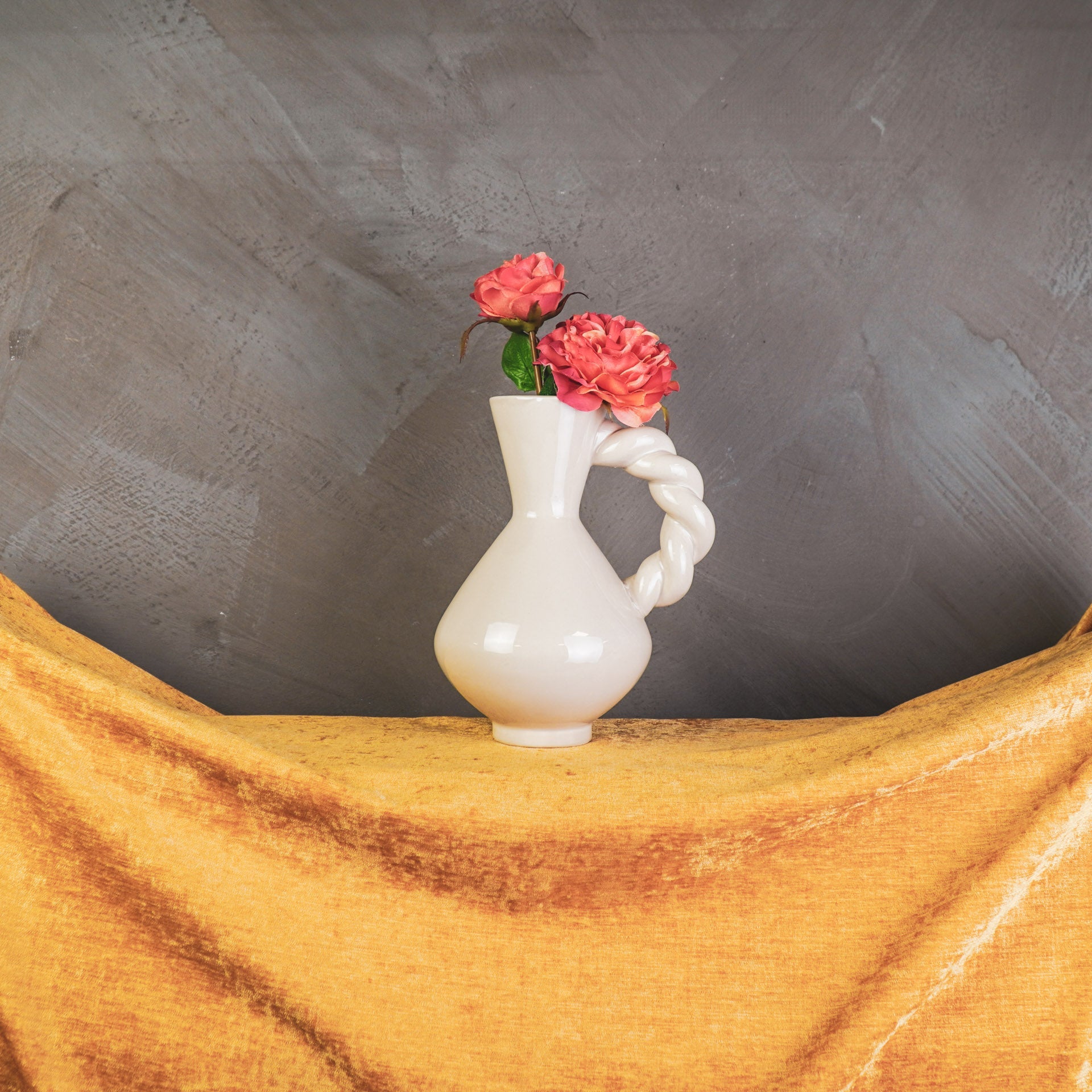 NET EVEN ANDERS Op zoek naar een unieke vaas of kan die jouw interieur compleet maakt? Ontdek dan deze prachtige vaas. Met gedraaid handvat en zandkleurige afwerking is deze vaas een echte eyecatcher in huis.