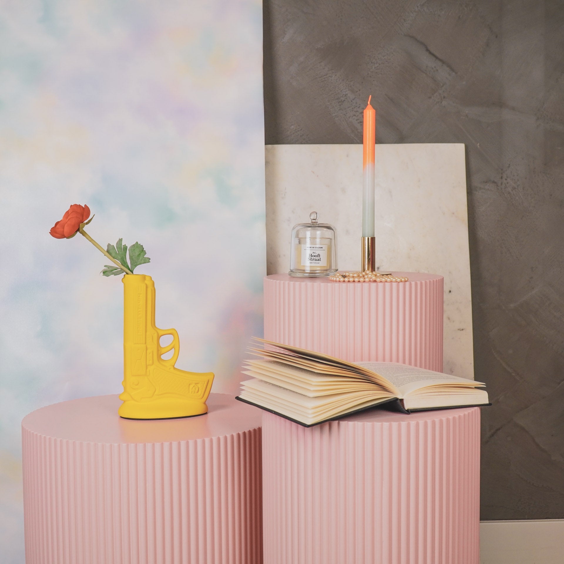 Styling tip: Ook zonder bloemen staat de pistool vaas leuk, zet hem daar neer waar nog iets stoers nodig is.