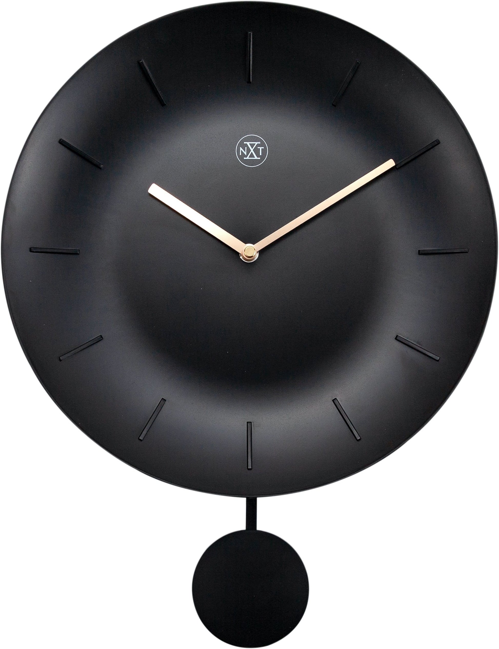 The nXt "Bowl" is a round plastic clock (Ø30 cm). The bowl-shaped dial with the golden hands and sweeping pendulum gives this clock a classy look. This clock runs on 1x AA battery (not included).