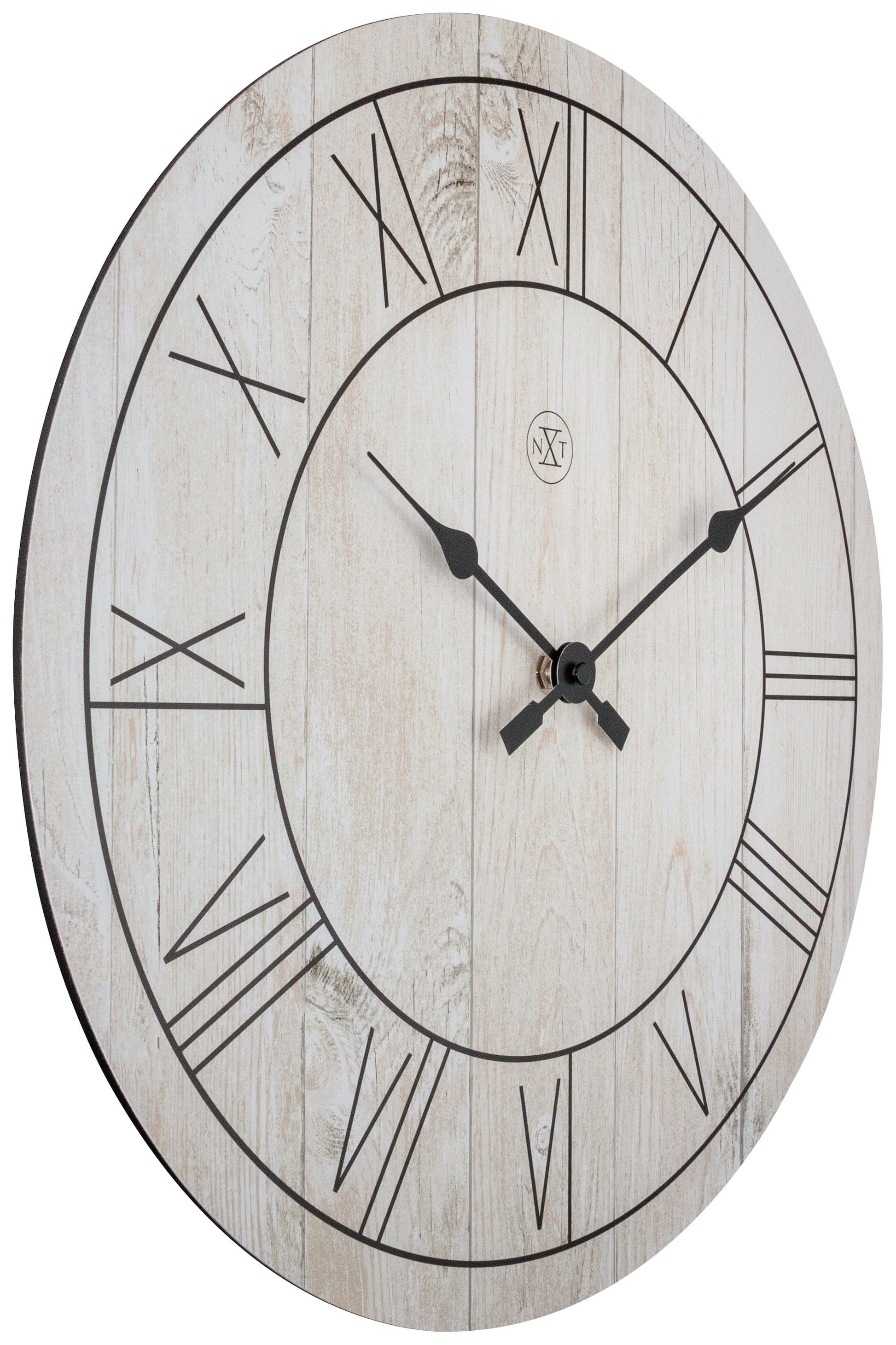 The nXt "Paul" is large (Ø40cm) round wall clock. The clock is made of wood with a wood print and roman index numbers. The combination of wood and the elegent hands gives this clock a warm and cosy look & feel.This clock works on 1 AA battery (not included).