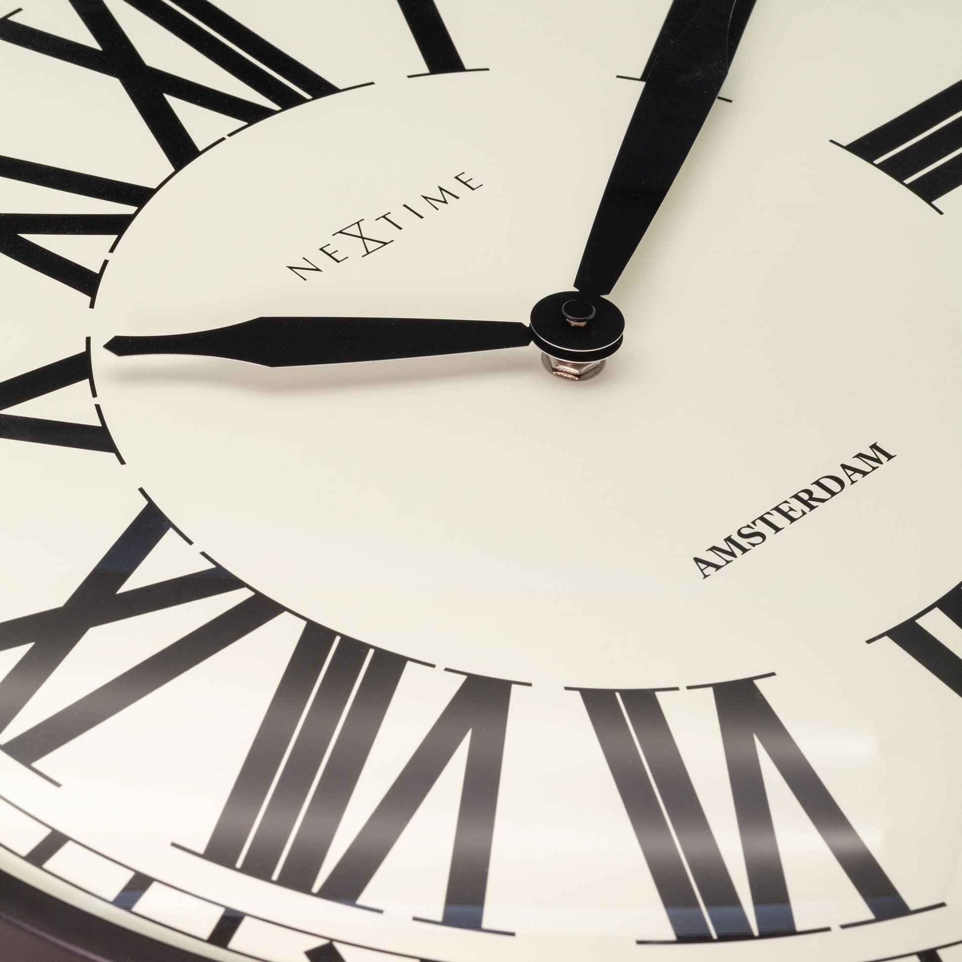 NeXtime’s New Amsterdam (40cm) is a silent metal wall clock that features large, black bold roman numbers on an off-white dial. Inspired by the retro metropolitan heyday, New Amsterdam gives a modern look with its black slim metal case and a dome-shaped glass lens.