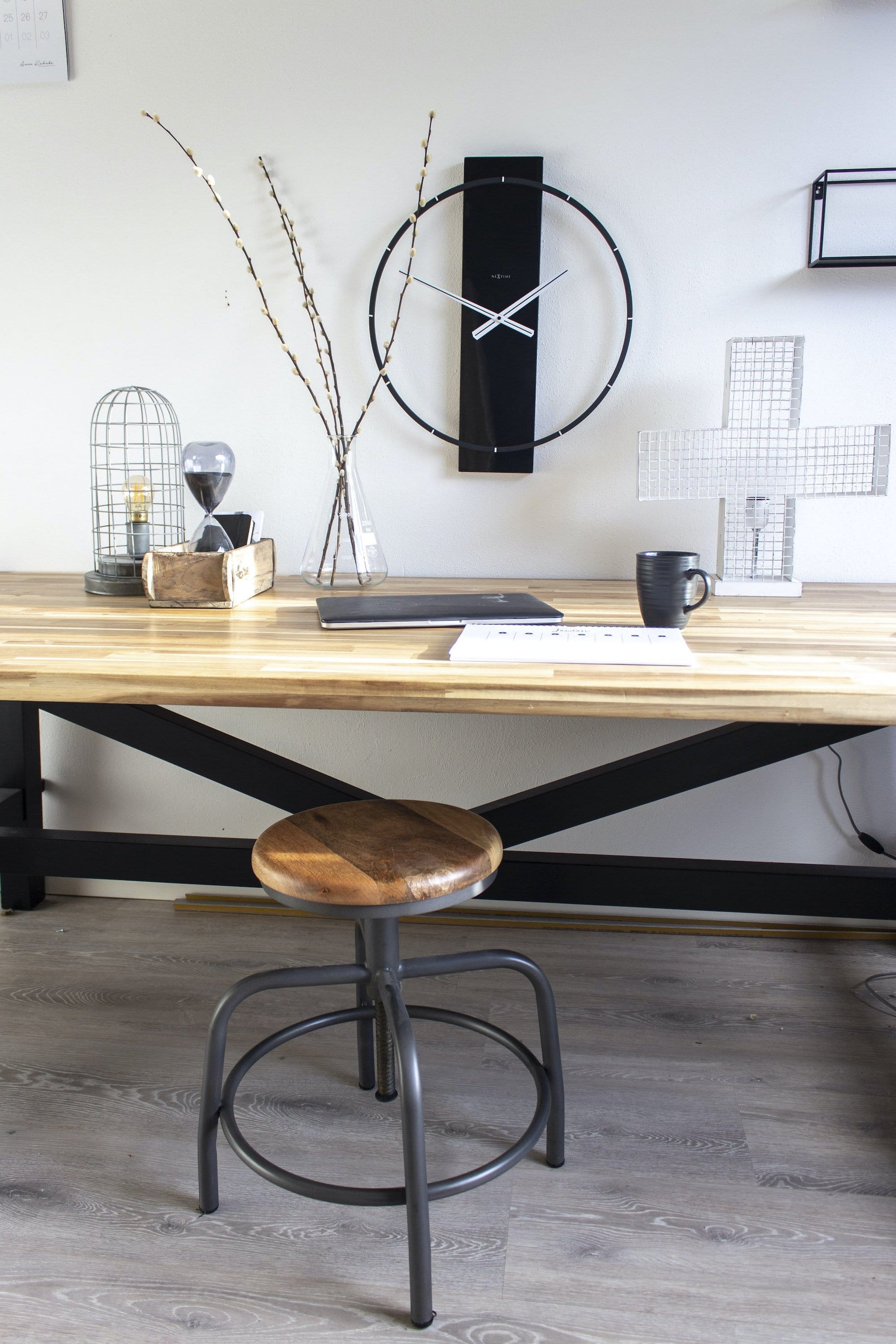 The NeXtime "Carl" is a large wall clock made of wood and stainless steel. This minimalist design combines the soft natural feeling of the wood with an industrial feeling because of the metal. The clock has silver hands and is silent. It runs on 1 AA battery (not included).