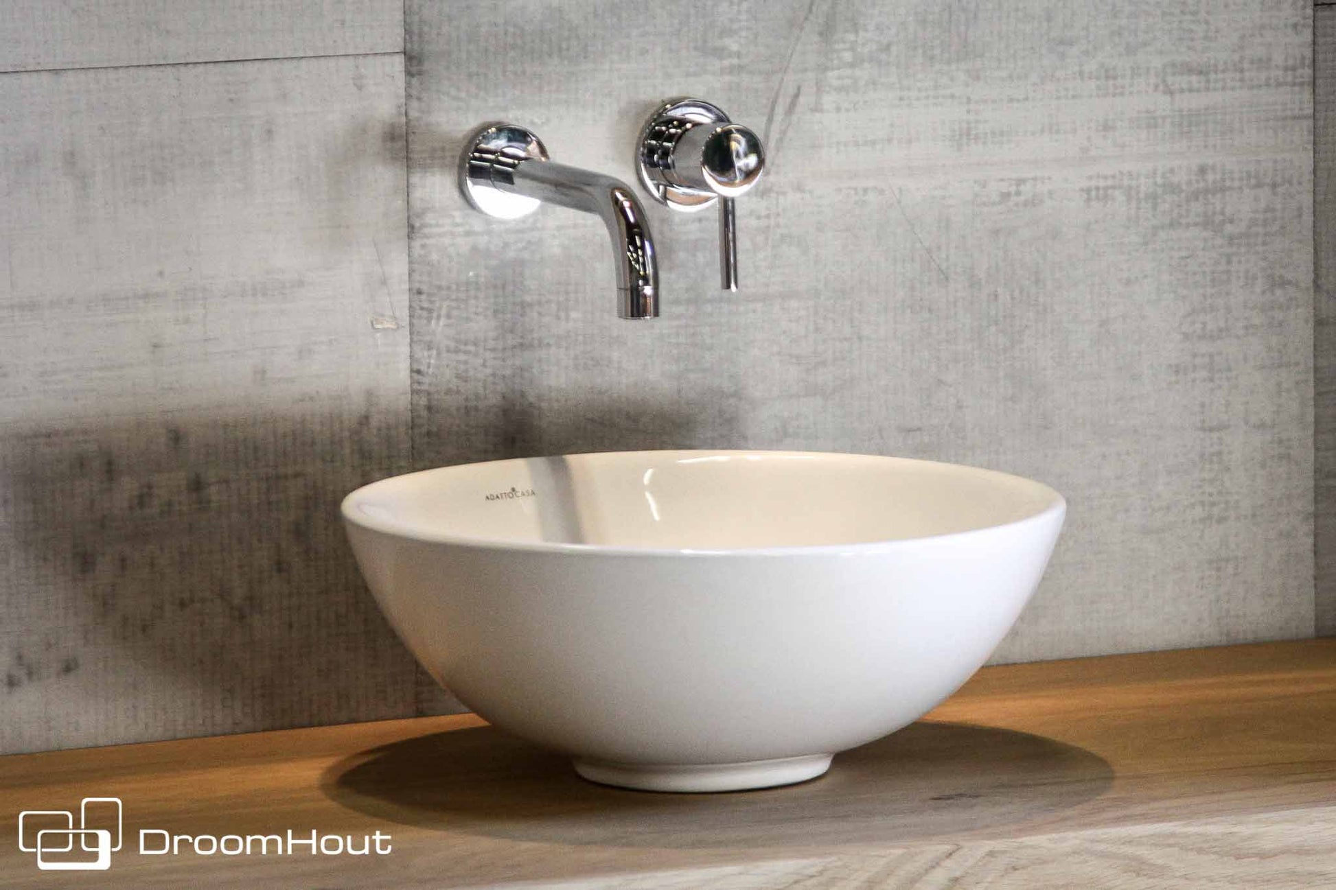 De waskom Venere past mooi op het badkamermeubel Serenity. Kies een kraan die uit de muur komt of een staande kraan zoals de kraan Pure, beiden staan super bij de waskom Venere.