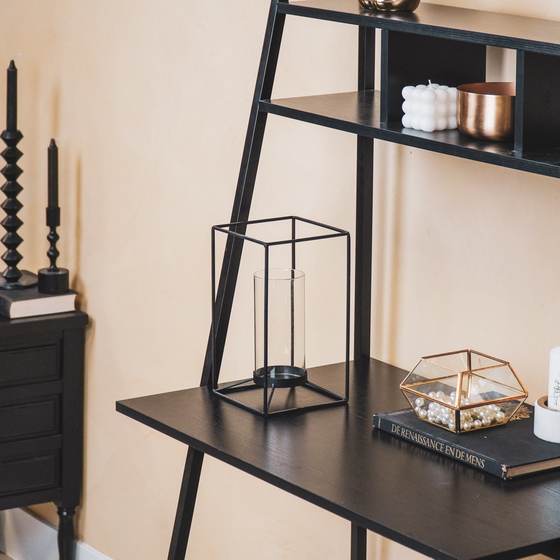 Windlicht - Metaal/Glas - Zwart - 14,5x14,5x25cm