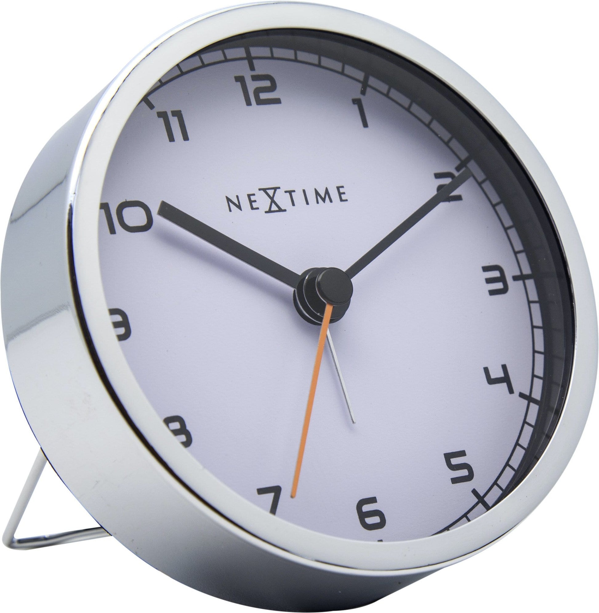 The NeXtime "Company Alarm" is an alarm clock with a metal case. It combines a professional look with a modern styling due to the orange second hand. The alarm clock has a silent movement, so you will not be kept awake due to a ticking sound. It runs on 1 AA battery (not included).