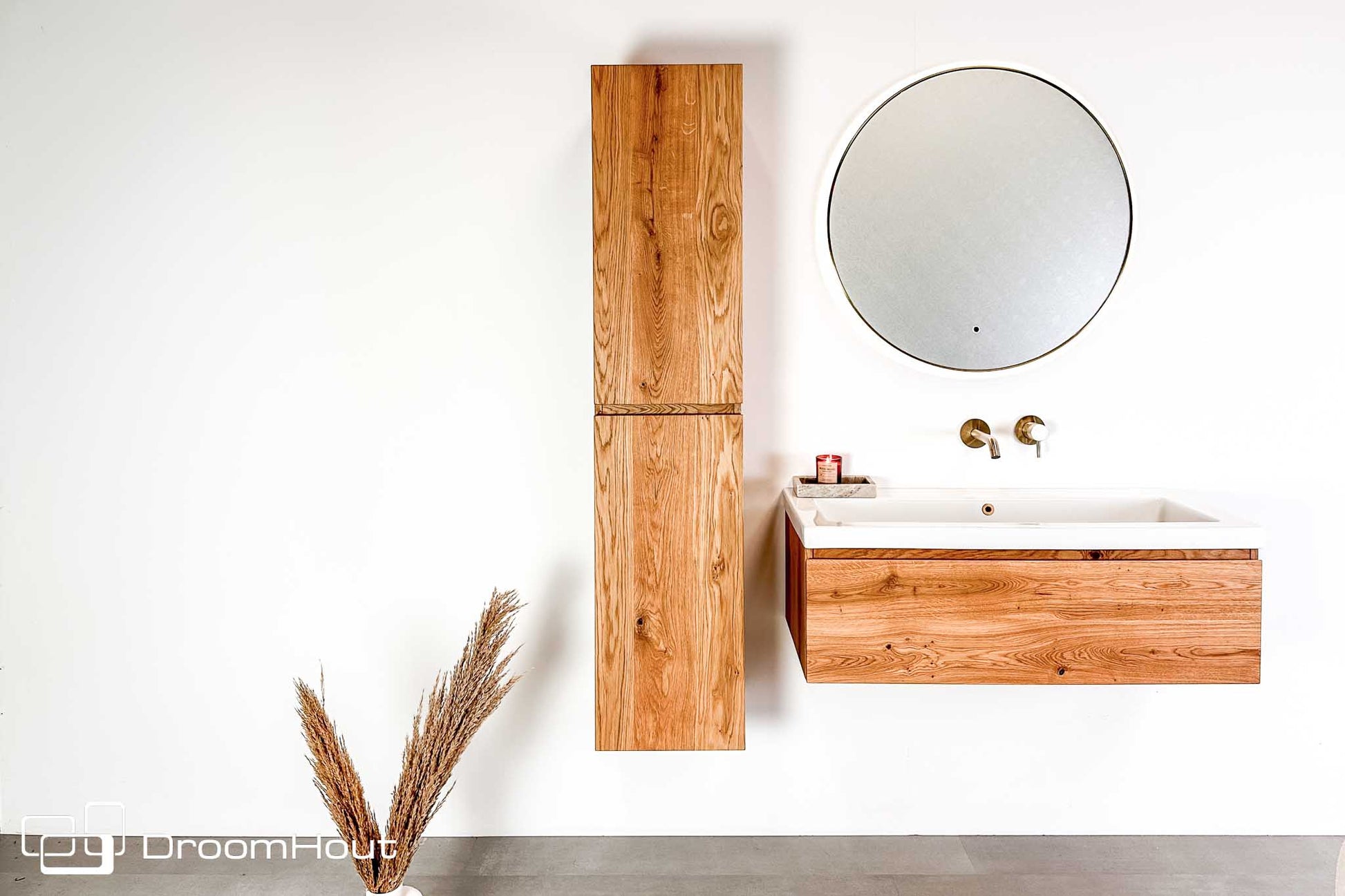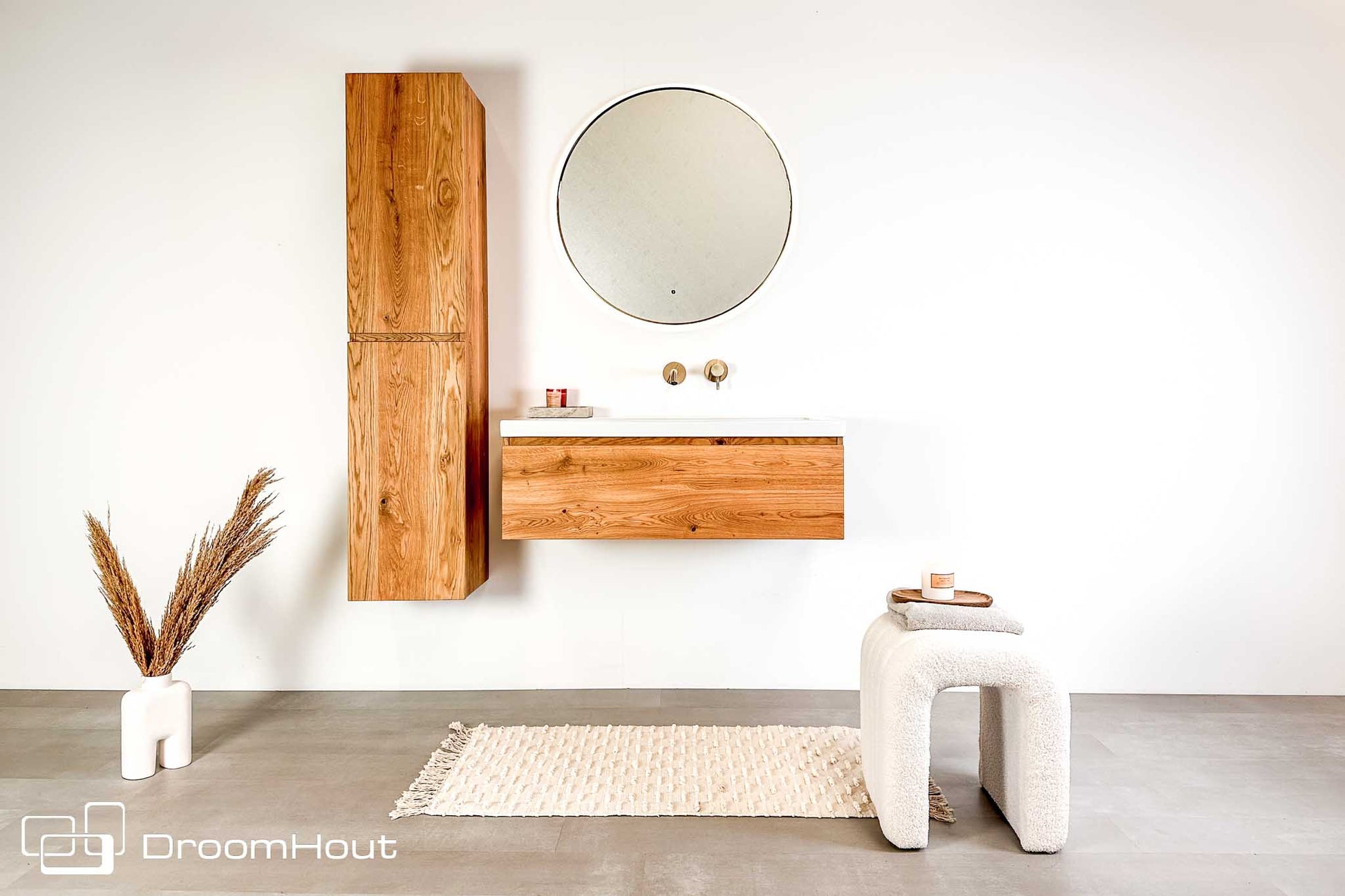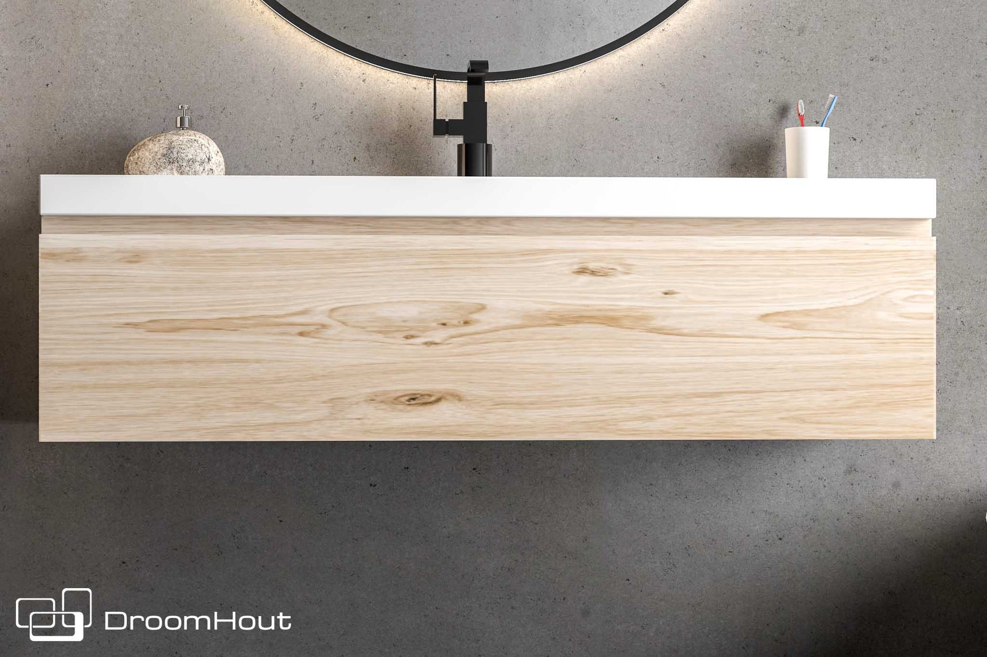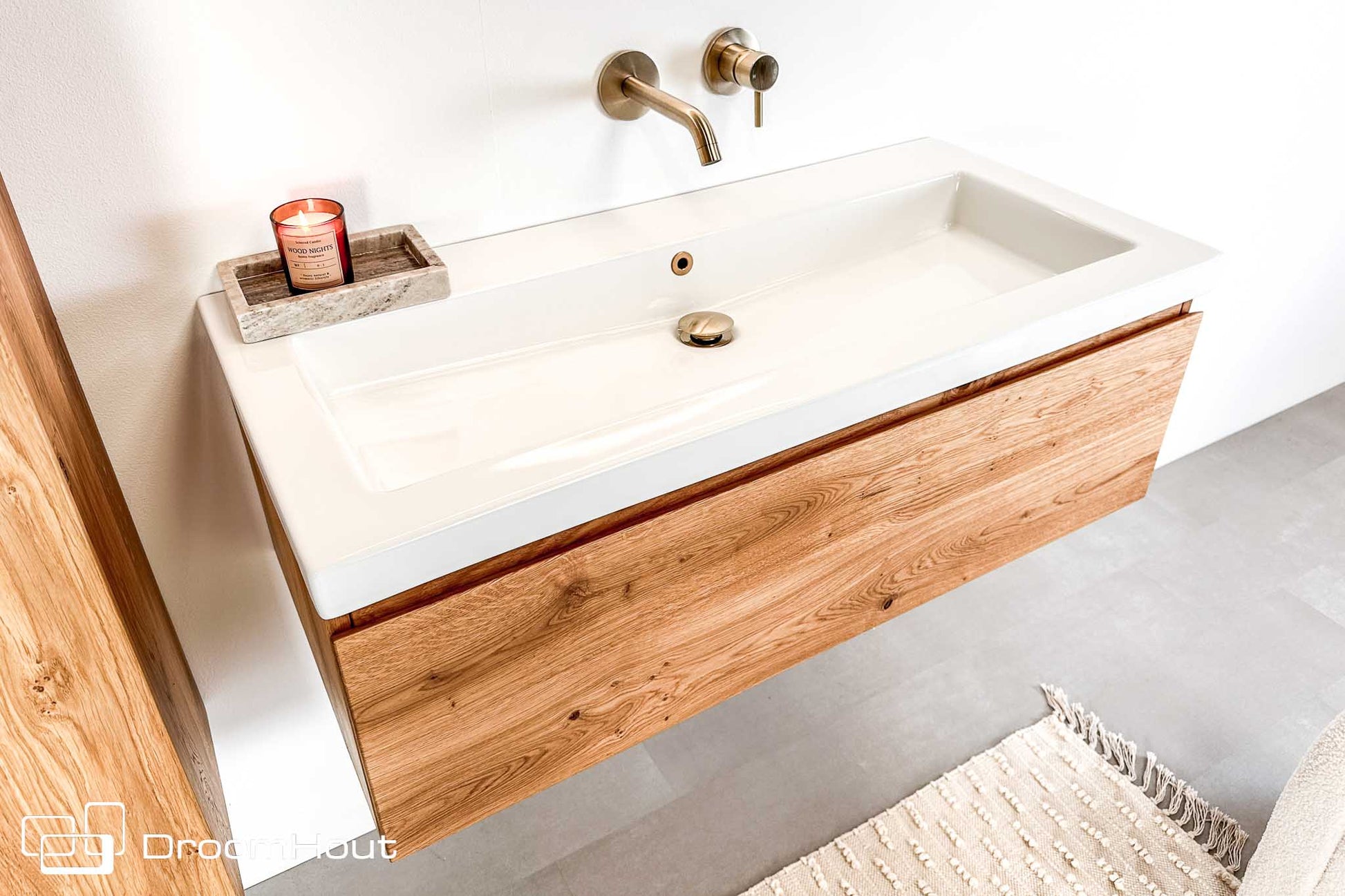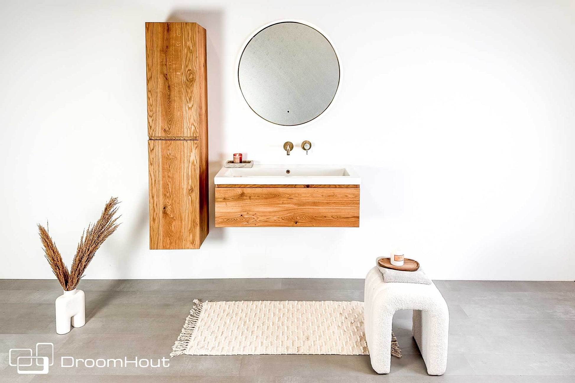 Wij van DroomHout weten als geen ander hoe belangrijk het is dat de badkamer een fijne plek moet zijn om je dag te starten (en te eindigen). Met dat idee in ons achterhoofd hebben wij een badkamermeubel-lijn bedacht die de badkamer omtoveren tot een plek waar je graag bent. Een van deze meubels is de Aqua badkamermeubel, een prachtige badkamermeubel met 1 lade die een serene sfeer geeft aan elke badkamer! Ben je op zoek naar een meubel met 2 laden? óók die hebben we in onze lijn. Bijvoorbeeld het badkamermeubel Wellness van Droomhout.