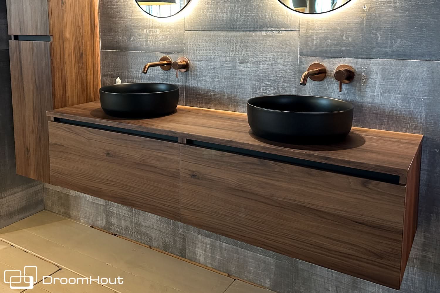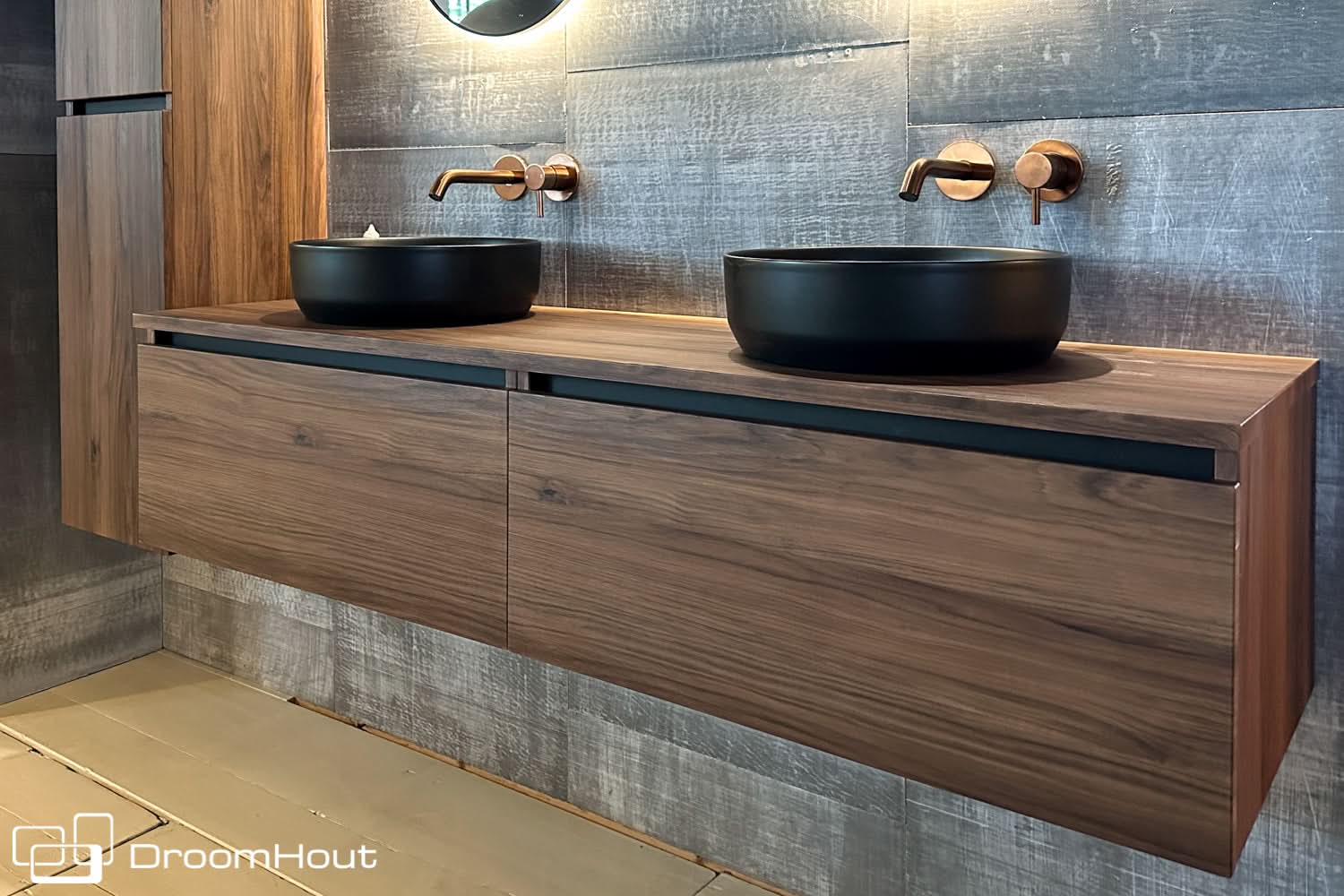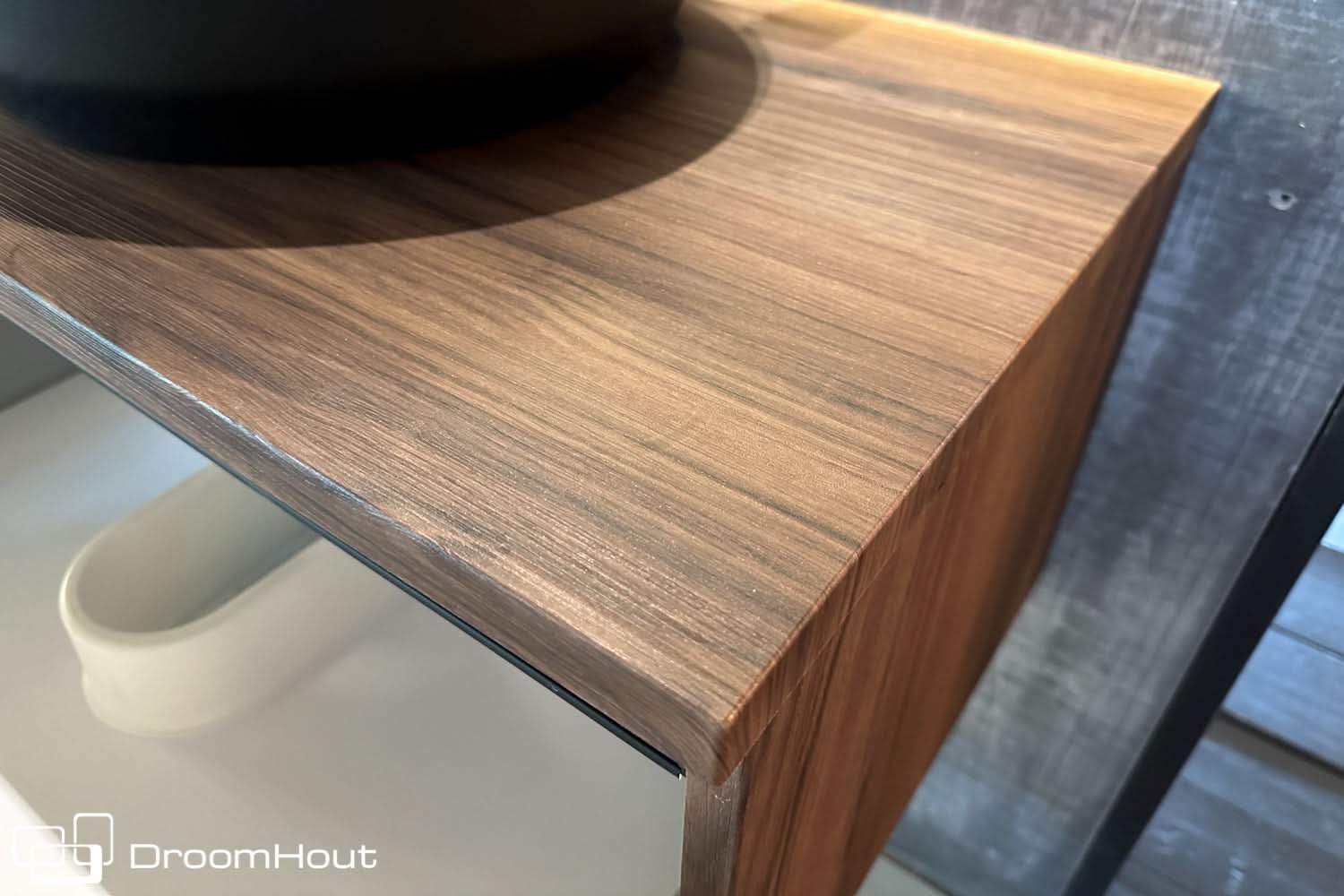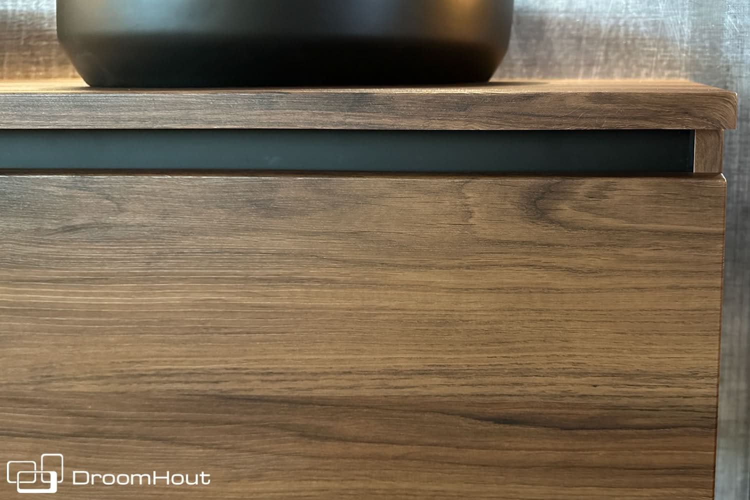 Houd je van de sfeervolle uitstraling van hout in je badkamer? Dit badkamermeubel Bliss is gemaakt van HPL, maar dan nèt echt. Het reliëf oppervlak geeft een extra echt gevoel van hout aan het badkamermeubel. Het badkamermeubel is gemakkelijk op te hangen en easy in gebruik. Het materiaal HPL is net wat goedkoper dan massief hout, waardoor dit badkamermeubel net iets voordeliger uitvalt dan onze massief houten badkamermeubels.