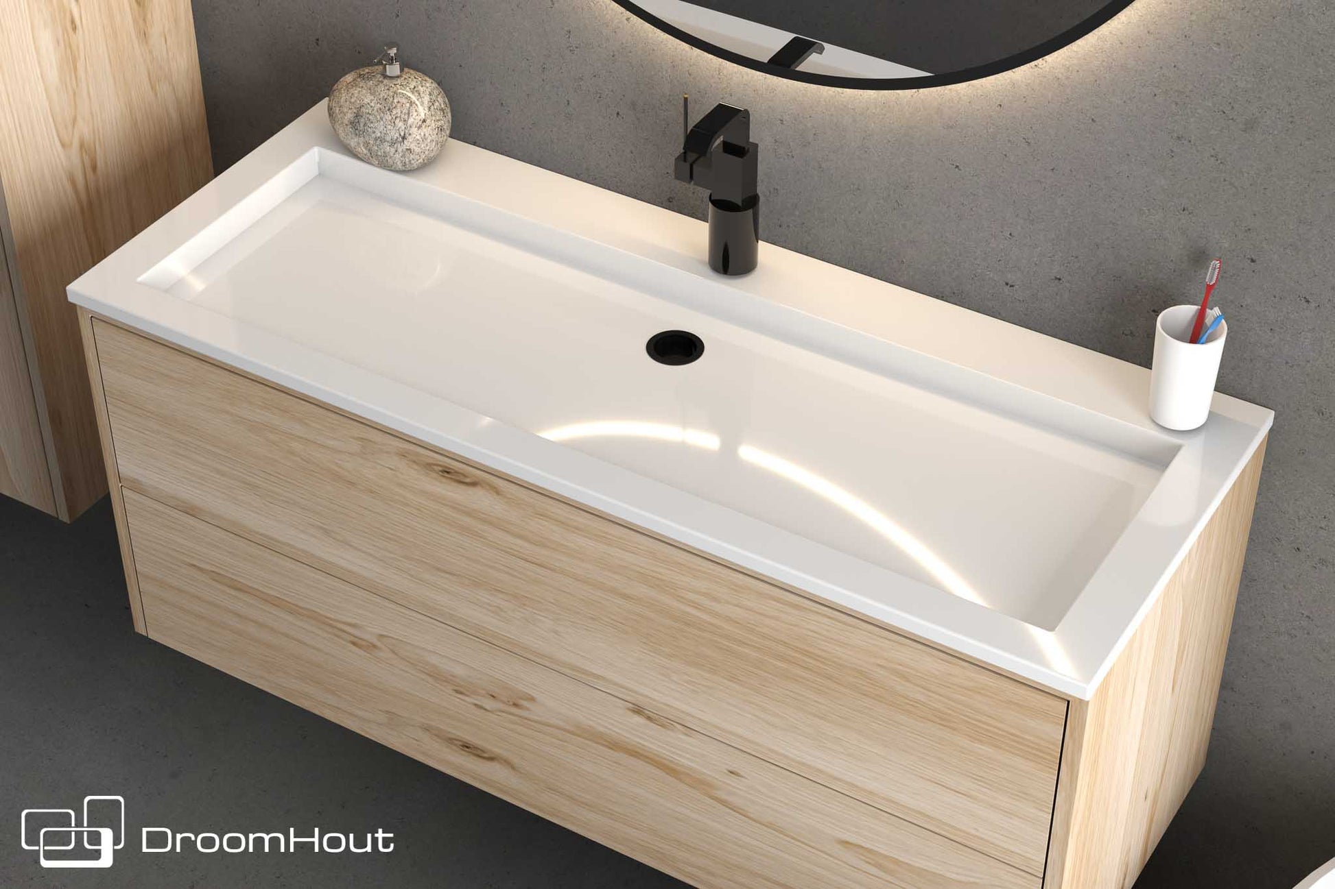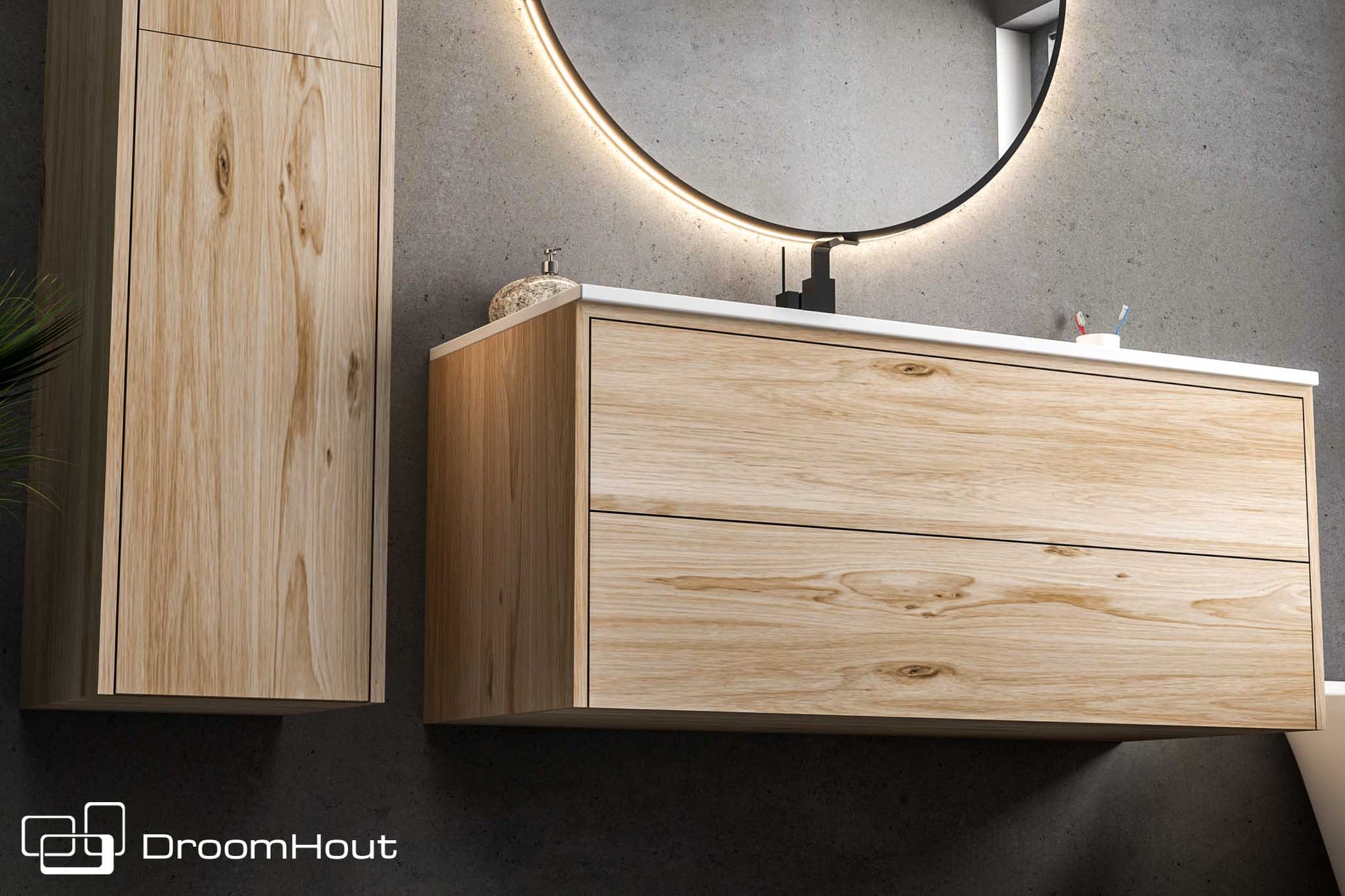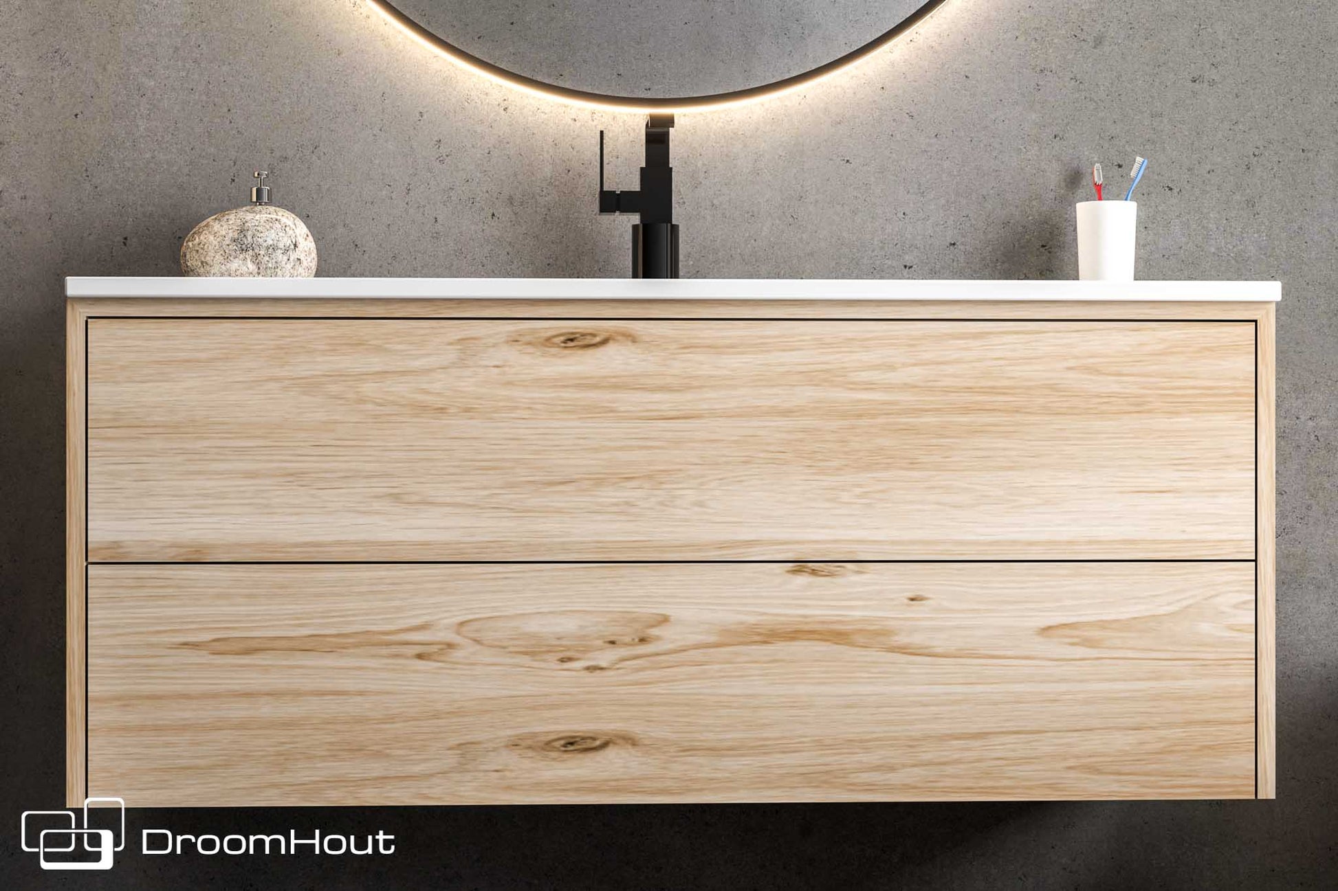 Wil je nou je badkamer helemaal afmaken? De badkamermeubel Breeze heeft ook een mooie bijpassende 'zwevende' houten badkamerkast in het assortiment. Deze kun je los of als houten badkamerset met elkaar bestellen. Ook hebben wij gave spiegels die prachtig boven de badkamermeubel zouden passen. Helemaal af toch? Kortom, het badkamermeubel Breeze is een prachtig ontworpen meubelstuk dat niet alleen functioneel, maar ook stijlvol is. Met zijn strakke design, hoogwaardige materialen en handige tip-on systeem is dit meubel een perfecte keuze voor wie op zoek is naar een tijdloos en praktisch badkamermeubel.