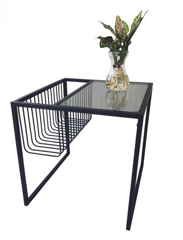 - Gemaakt van zwart metaal en glas
