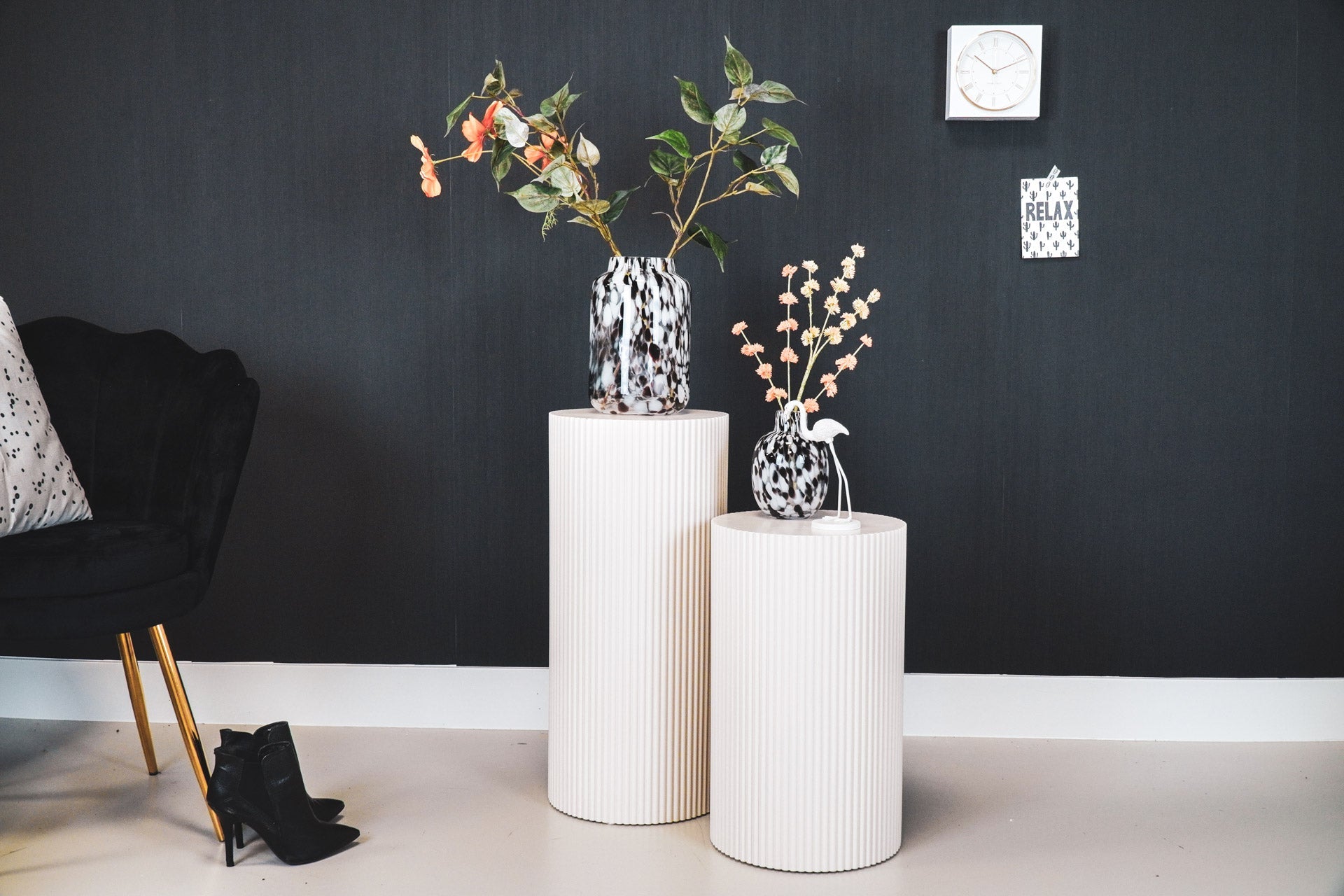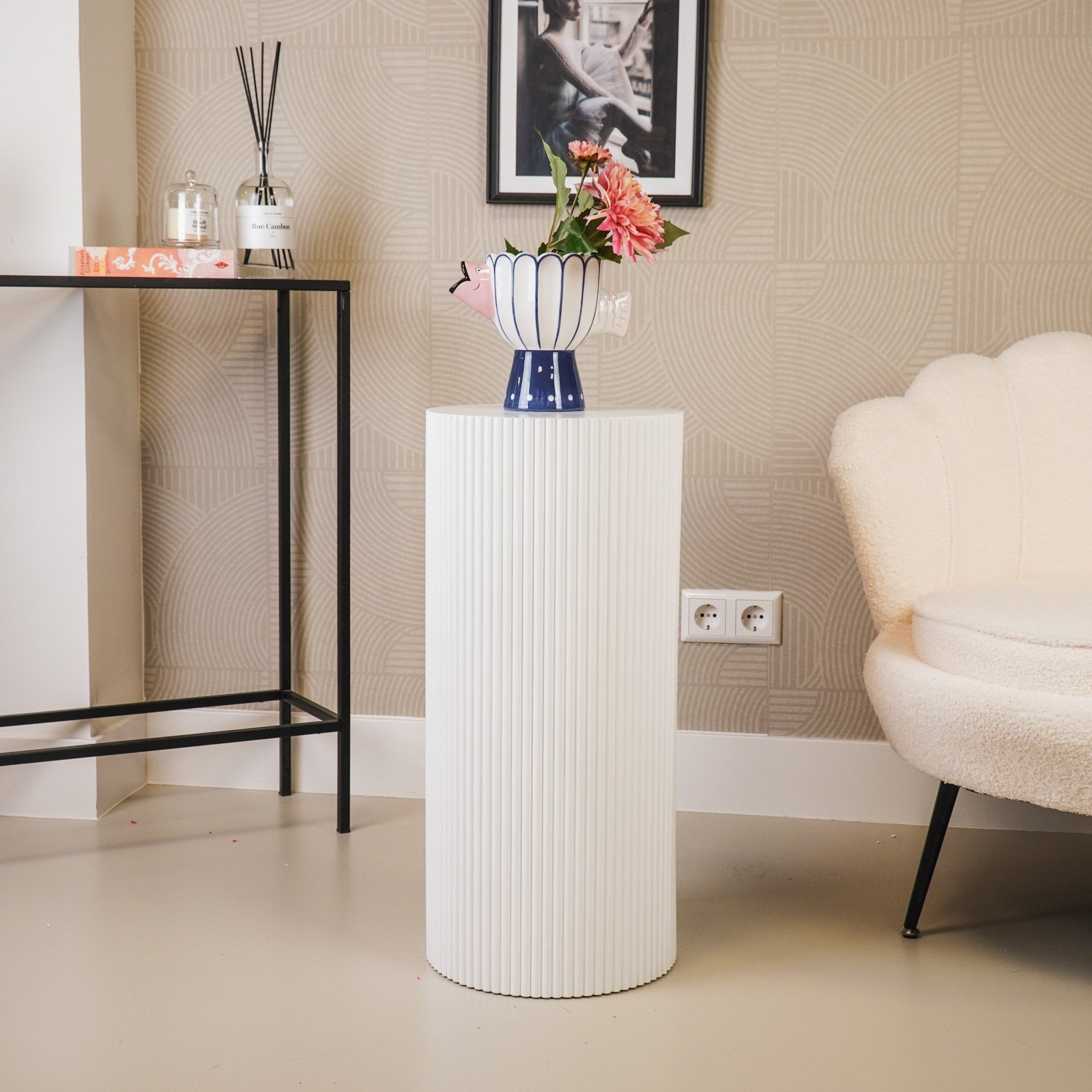 PILAAR BIJZETTAFEL - Planten en andere objecten verdienen het om te shinen, dus geef ze alsjeblieft een podium! Met deze geribbelde cilinders geef je jouw mooie items echt een podium. Dit formaat cilinder kan als pilaar of bijzettafel worden gebruikt. Jij beslist!